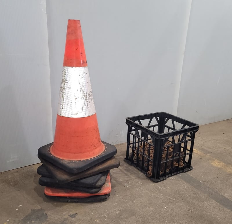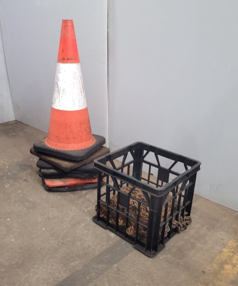 Heavy Duty Chains, 1 crate in total plus 7x Witches Hats. SOLD as LOT