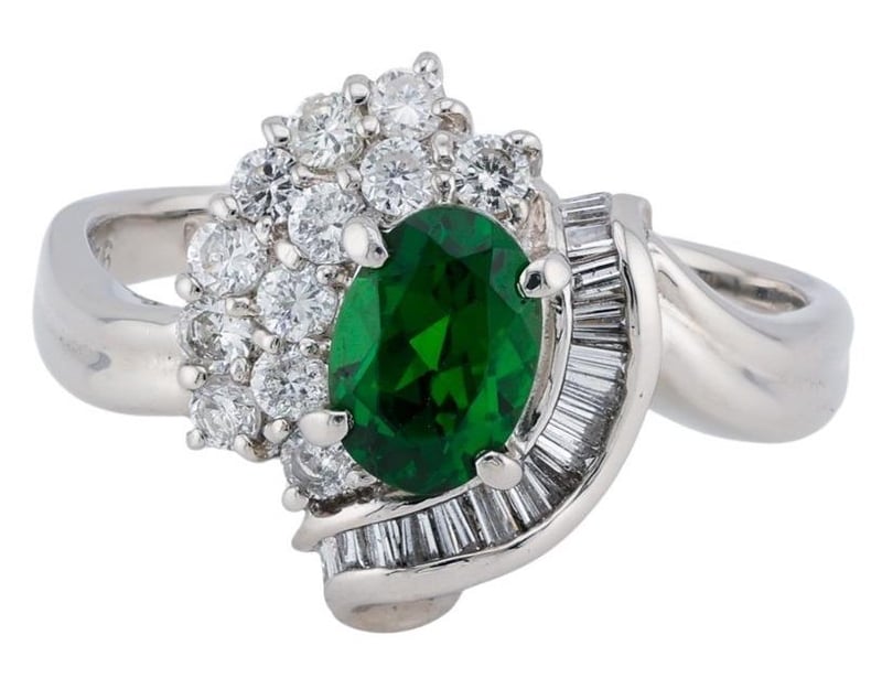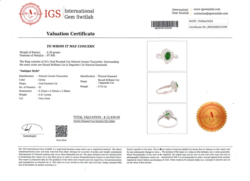 PLATINUM NATURAL DIAMOND AND GARNET RING Date : 18-03-2024Category : Ring Comment : Pt 900Natural Garnet ( Tsavorite) : 0.41 Carat Natural Diamond : 0.76 Carat Item Weight : 4.38 G*Antique Style* Condition: New - Refer Images160033+14