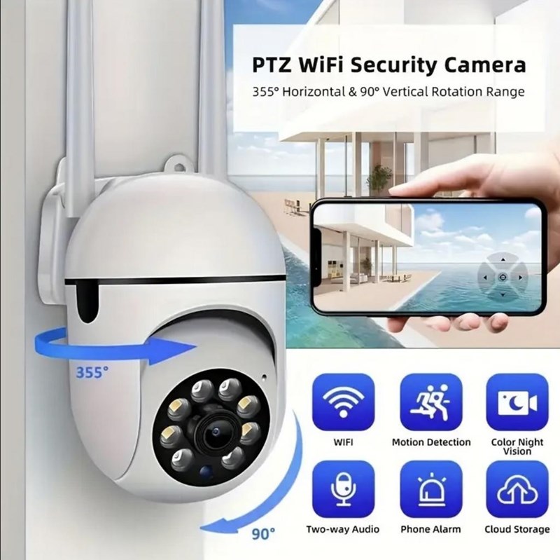 1080P HD Wireless Security Camera - Indoor/Outdoor, WiFi Enabled with Motion Tracking, Colour Night Vision & Two-Way Audio for Pet Monitoring, White