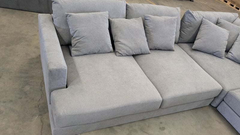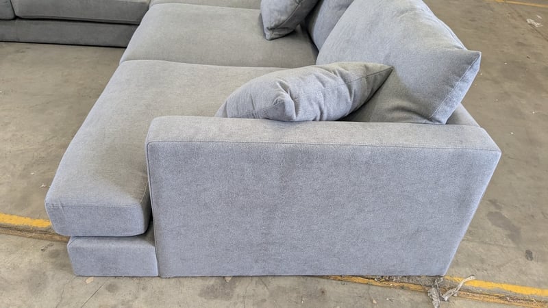 RRP $4999, Monte Carlo Fabric Corner Lounge Suite, Model: LOMONCFACL318 Product Type - Sofas Colour - Storm No. of Seats - 5 Seater Furniture Features - Static, Corner Upholstery Type - Fabric Seat Cushion Filling - Foam Cushion Support - Springs Product Width - 315 cm Product Height - 88 cm Product Length - 315 cm