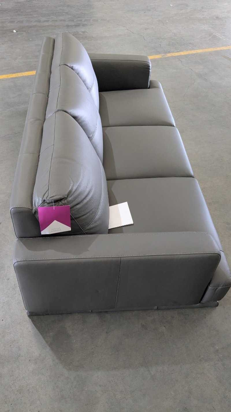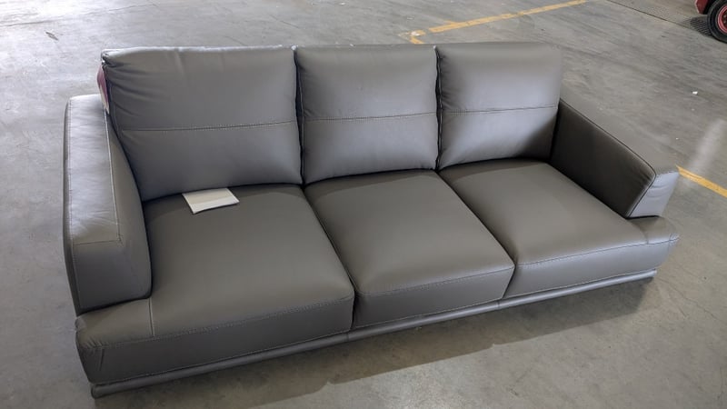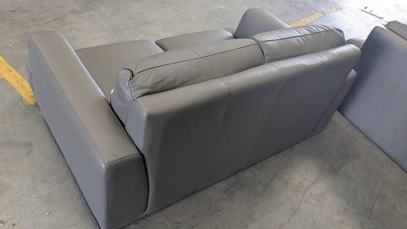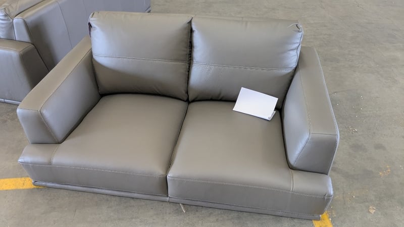 RRP $3499, Iris 2-Piece Leather Lounge Suite - Grey, Model: VHNL-IRIS-02 Product Type - Lounge Suites Colour - Grey Number of Seats - 5 Frame Material - MDF, Plywood Leg Material - Rubberwood Upholstery - Leather Support System - Webbing, Zig Zag Spring Back Cushion Filling Material - Foam, Polyester Fibre Seat Cushion Filling Material - Foam Product Height (cm) - 3-Seater: 83 | 2-Seater: 83 Product Width (cm) - 3-Seater: 209 | 2-Seater: 154.5 Product Depth (cm) - 3-Seater: 99.5 | 2-Seater: 99.5 Weight (kg) - 97
