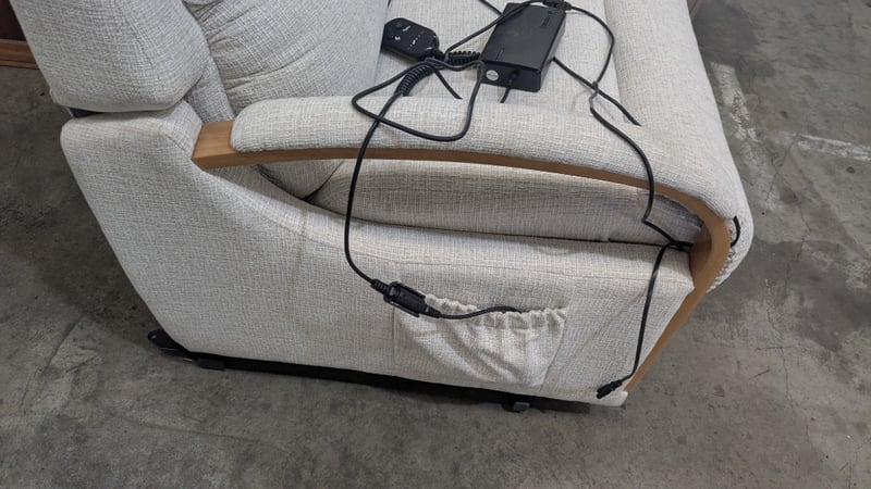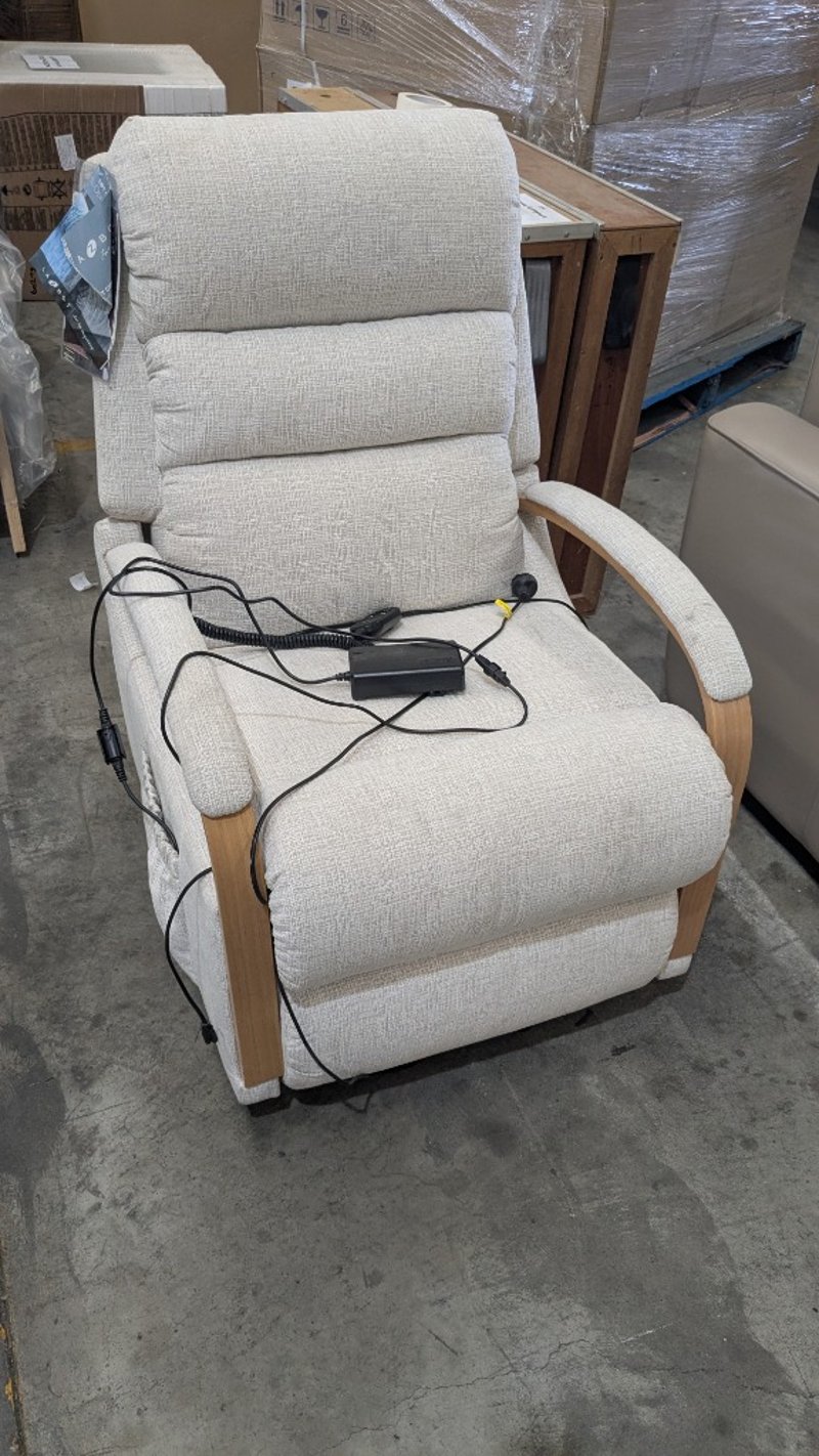 RRP $1799, Charleston Fabric Lift Chair NOTE: UNTESTED Product Type - Lift Chairs Colour - Ivory Frame Material - Plywood Upholstery - Fabric Reclining Mechanism - Electric Support System - Springs Back Cushion Filling Material - Foam with Fibre Fill Wrap Seat Cushion Filling Material - Foam with Batting Wrap Assembly Type - Assembly Required Weight (kg) - 51 Width - 69cm Height - 102cm Depth - 89cm