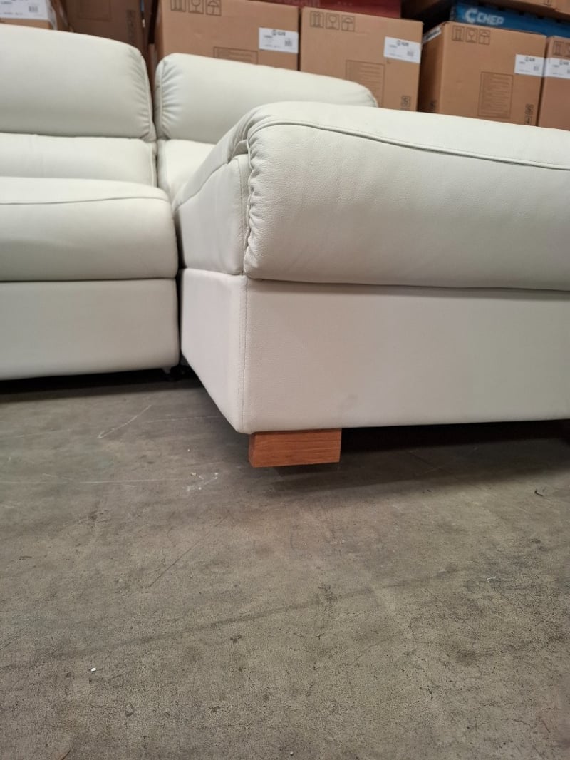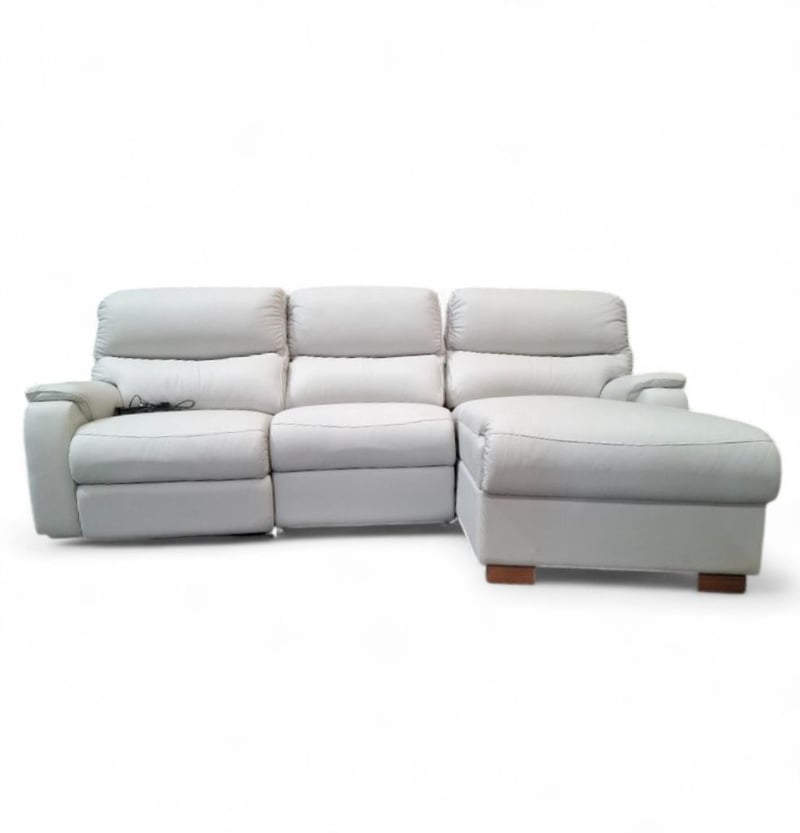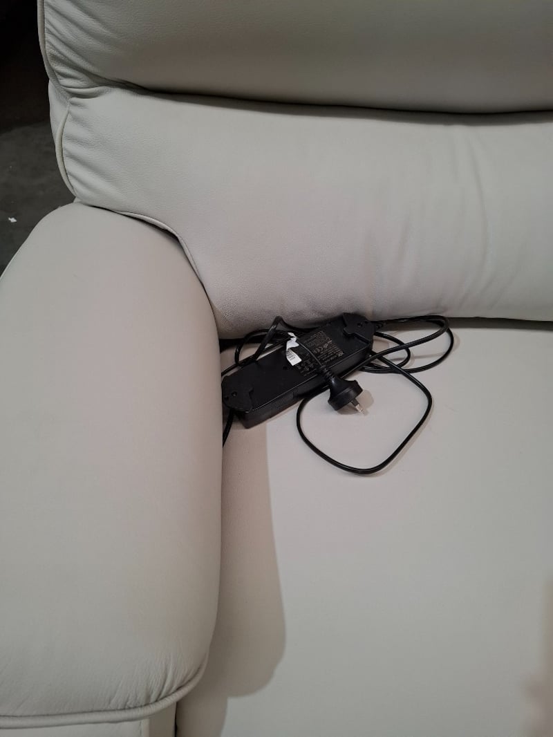 RRP $899 Fraser 3 Seater Electric Sofa With Left Chaise, Garstone Plain NOTE: DAMAGE VISIBLE, MISSING LEG, UNKNOWN IF IN WORKING CONDITION UNTESTED