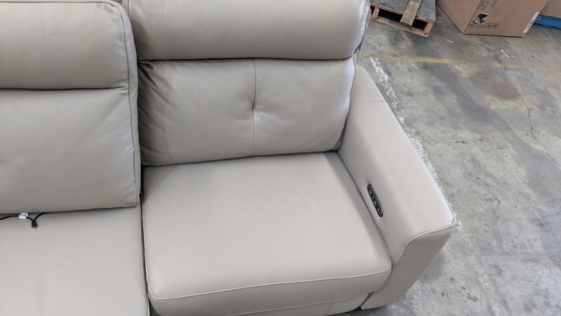 2.5 Seater Electric Recliner, Leather, Tan, USB charging Ports, Push Button Control Dimensions: 2000mm(W) x 900mm(D) x 900mm(H) NOTE: UNTESTED