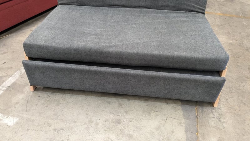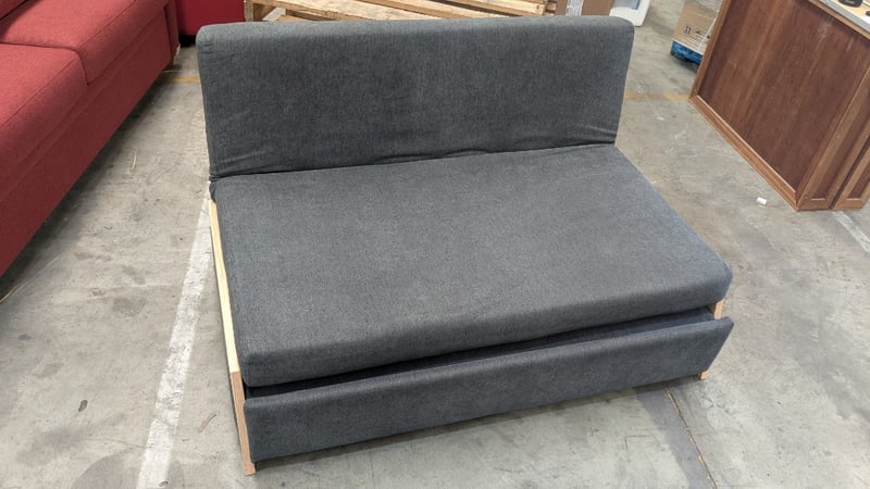 Sofa Bed, 2 Seater, Light Timber Frame, Grey Fabric Dimensions: Folded 135cm(W) x 100cm(D) x 80cm(H)