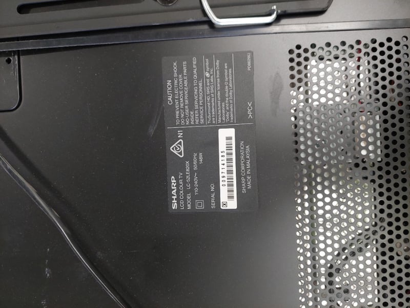 SharpAquos 52inch television, includes wall bracket Dims: 126cm x 81cm x 5cm Model: LC-52LE820X Serial number: 009714185 Note: item is untested.