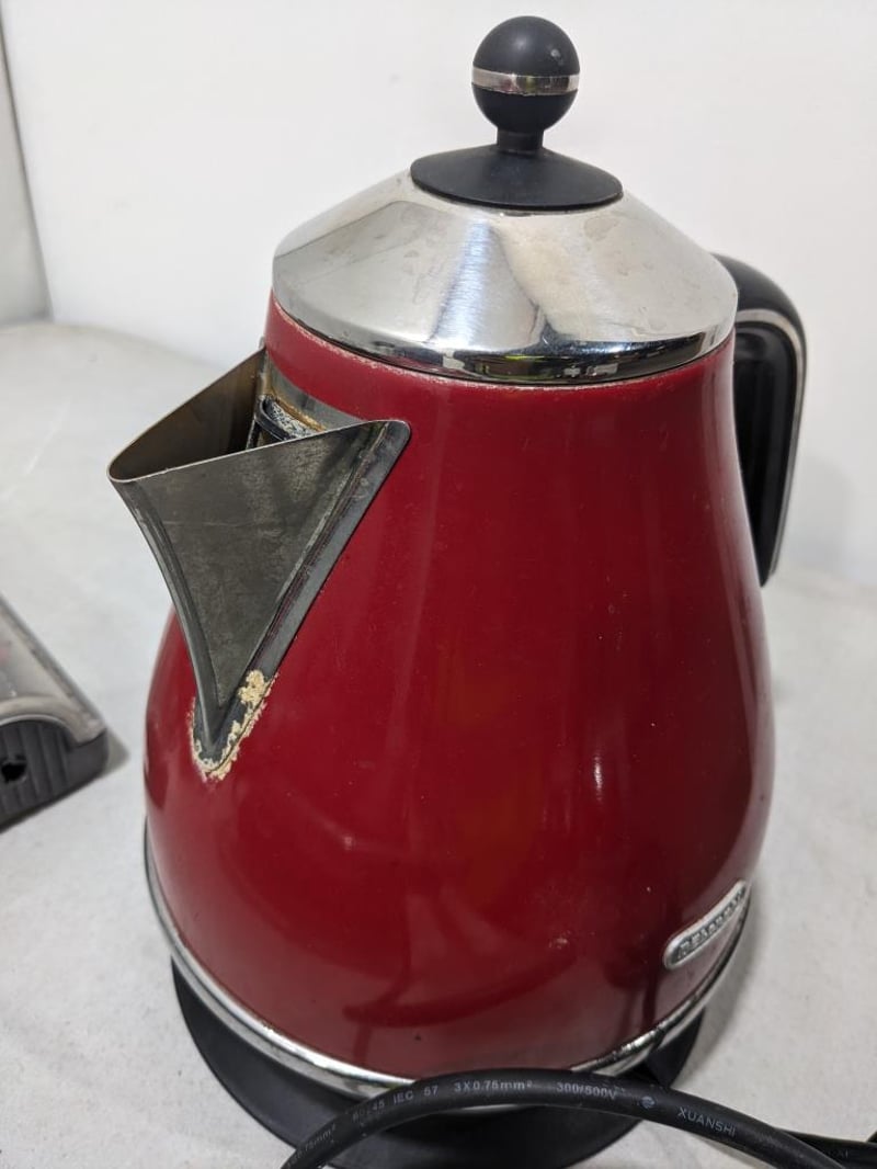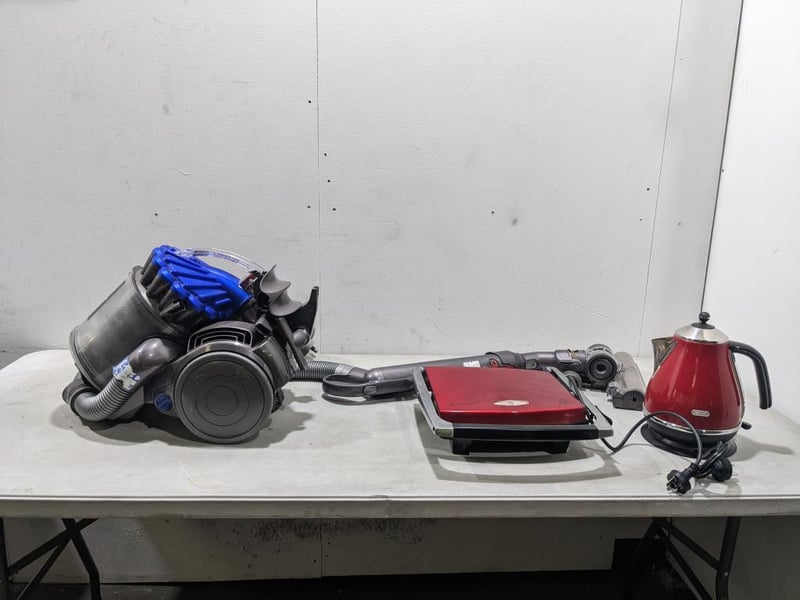 Assorted items, includes:-Dyson stowaway vacuum -Kettle DeLonghi, S/N: 41822-Russell Hobbs, M/N: RHSP801REDNote: Signs of ware and tear, untested.Sold as a lot.