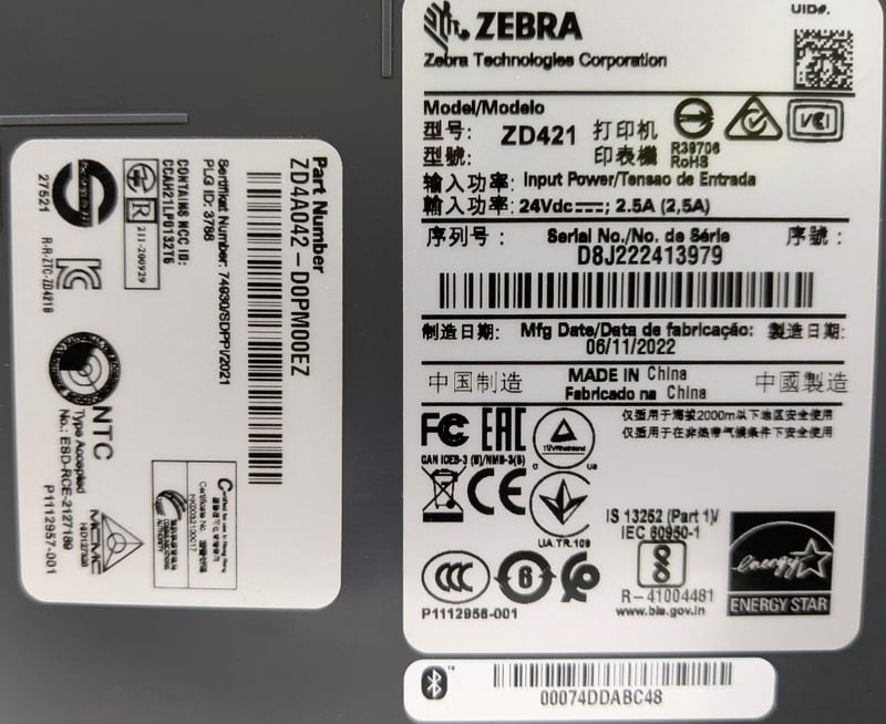 Zebra Label Printer Model: ZD421 Serial: D8J222413979 SOLD AS LOT