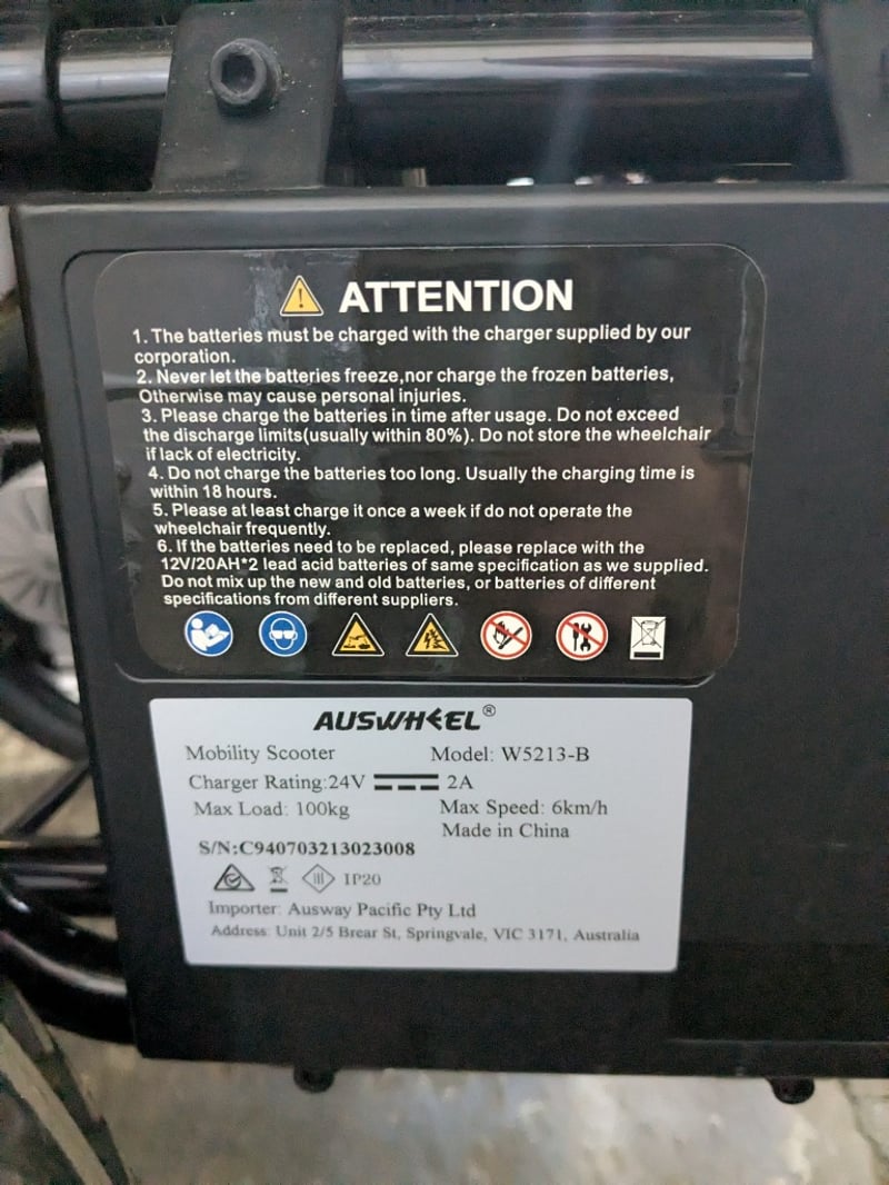Wheelchair, Auswheel power chair model no. W5123-B No power cable
