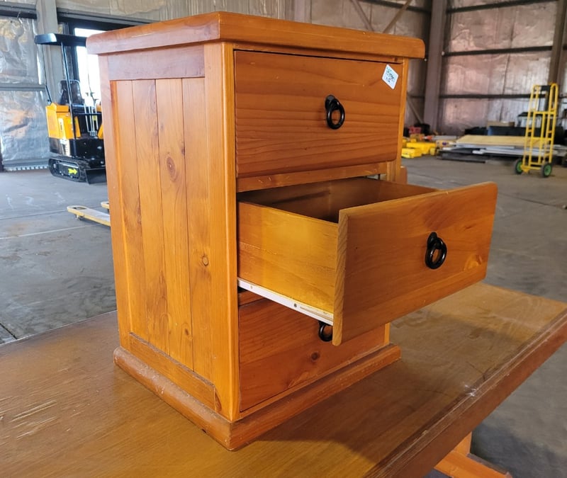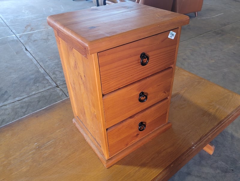 Wooden 3 Drawer Bedside Set. Unknown Brand. Used Condition. Inspection Advised.
