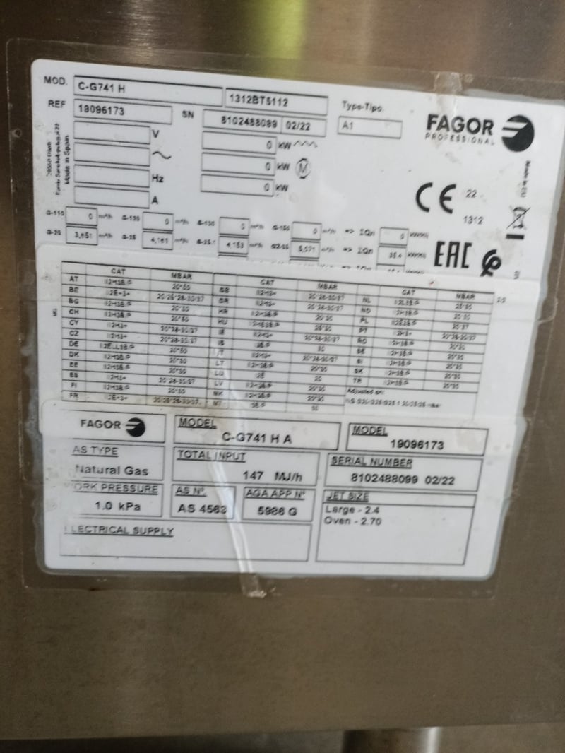Fagor Kore 700 4 Burner Gas Range With Gas Oven - C-G741H 800mm W x 730mm D x 850mm H