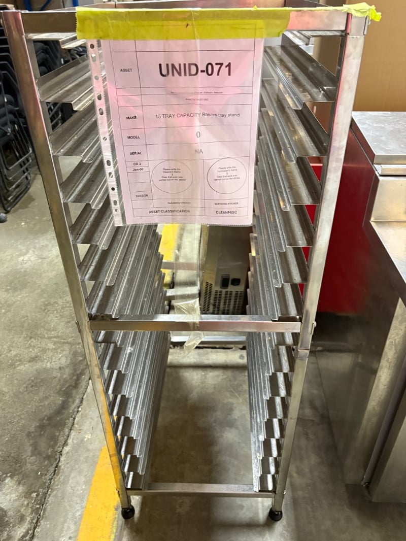 15 Tray Capacity Bakers Tray StandStainless Steel, ScratchesDimensions: W470MMxD620MMxH1300MM
