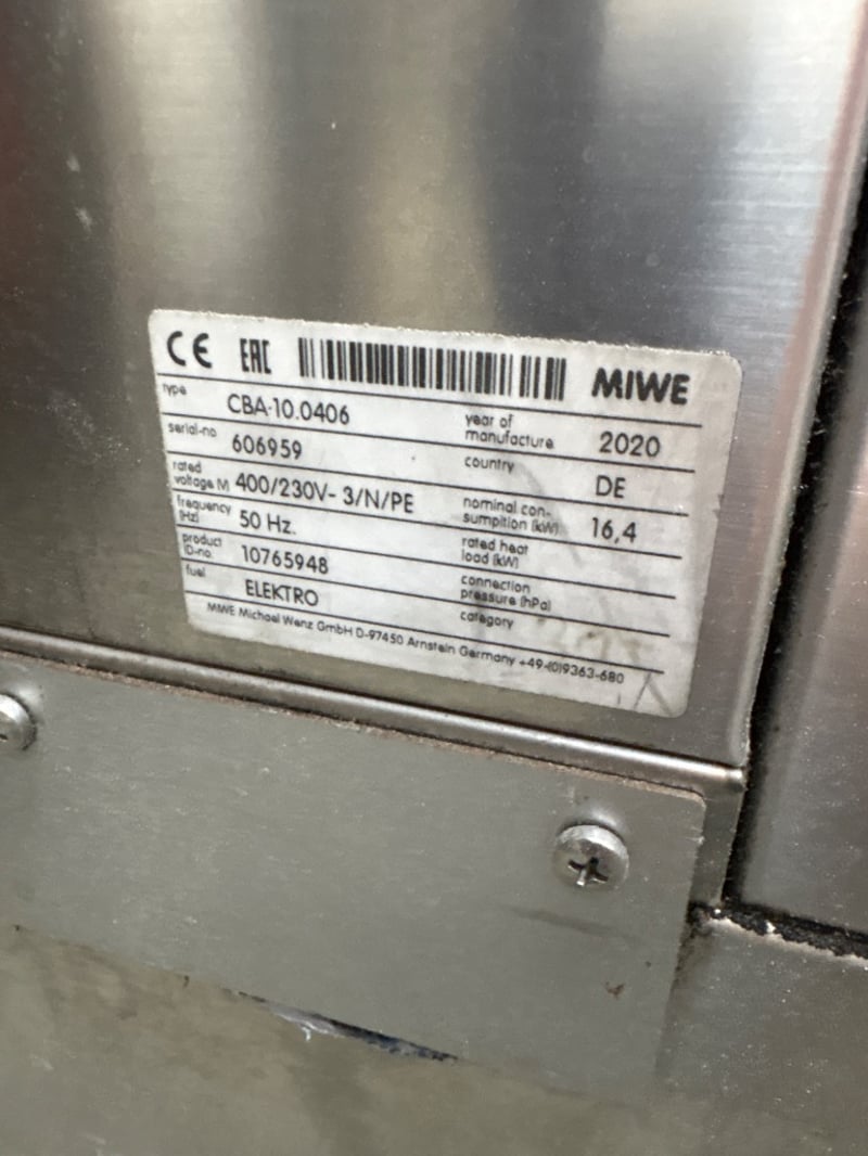 MIWE Cube Air Commercial OvenCommercial baking oven with glass door. Used condition. Working condition unknown, sold as-is.Dimensions: H 140cm W 80cm D 80cm