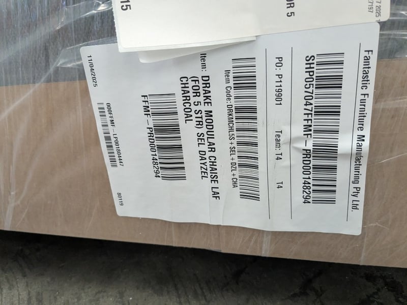 Modular Chaise for 5 Seater Couch in Charcoal Fabric. Note: Condition is new and wrapped but some Items Have Slight Scuff Marks & Stains, Some Items Marked Warehouse Rejected PARTS MAY BE MISSING, INSPECTION HIGHLY RECOMMENDED PARTS MAY BE MISSING, INSPECTION HIGHLY RECOMMENDED. PARTS MAY BE MISSING, INSPECTION HIGHLY RECOMMENDED.