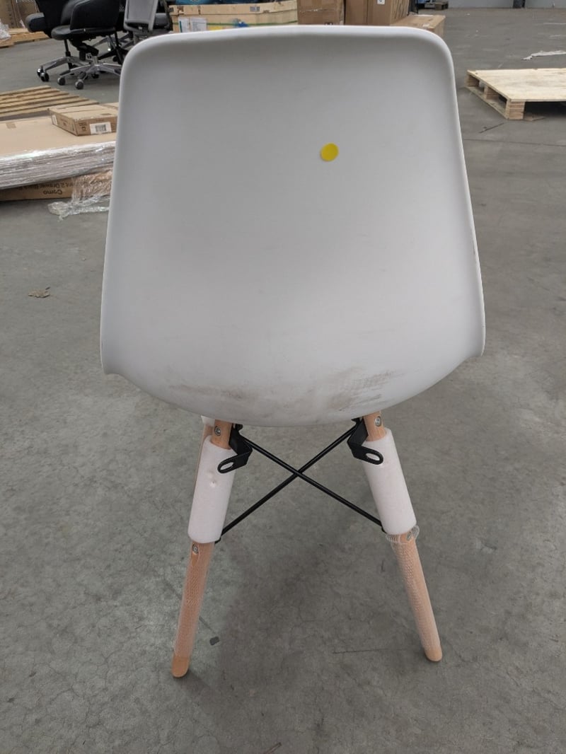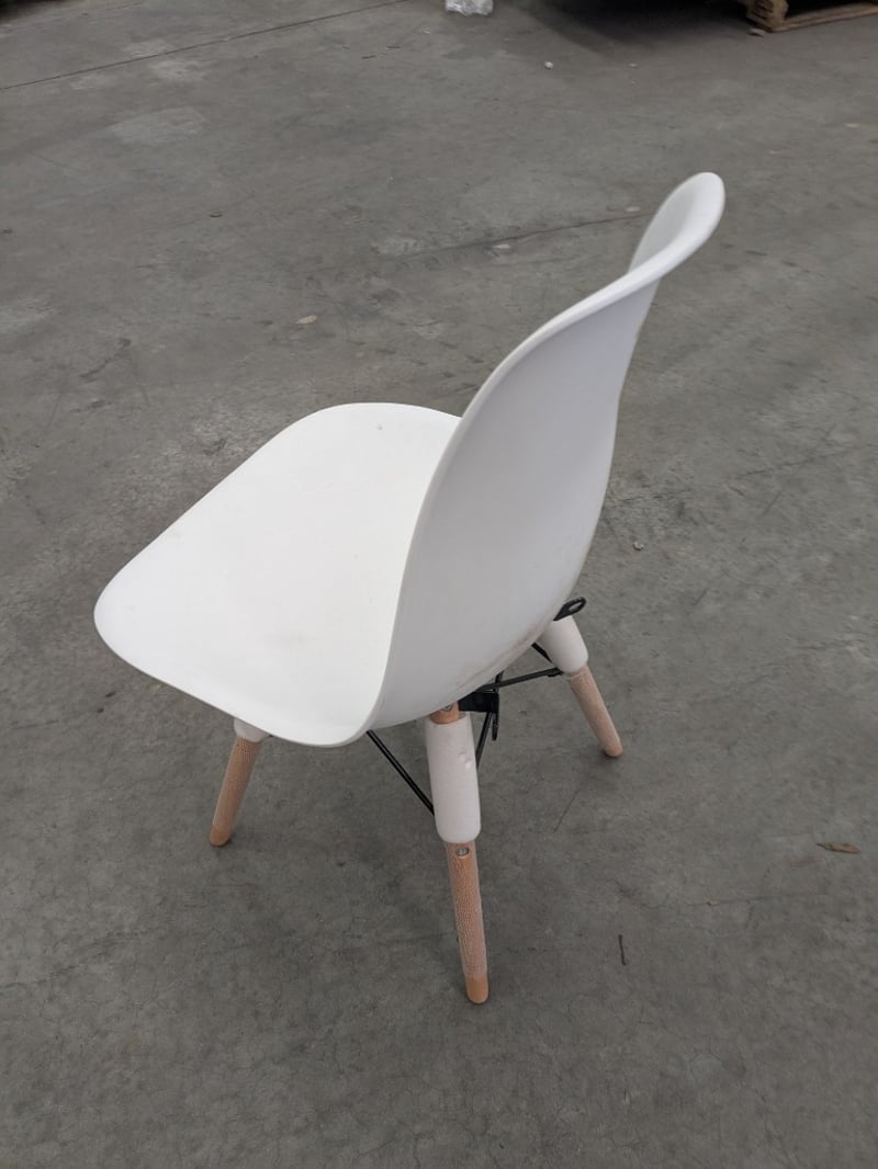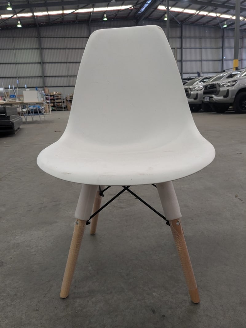 Plastic Highback Chair, White with Attached Timber Style Legs, Approximate Dimensions: H 15cm x W 98cm x D 53 cm. On-site Note: Some Items Have Slight Damage, Scuff Marks & Stains, Some Items Marked Warehouse Rejected PARTS MAY BE MISSING, INSPECTION HIGHLY RECOMMENDED PARTS MAY BE MISSING, INSPECTION HIGHLY RECOMMENDED, Inspection Recommended, Refer to Images