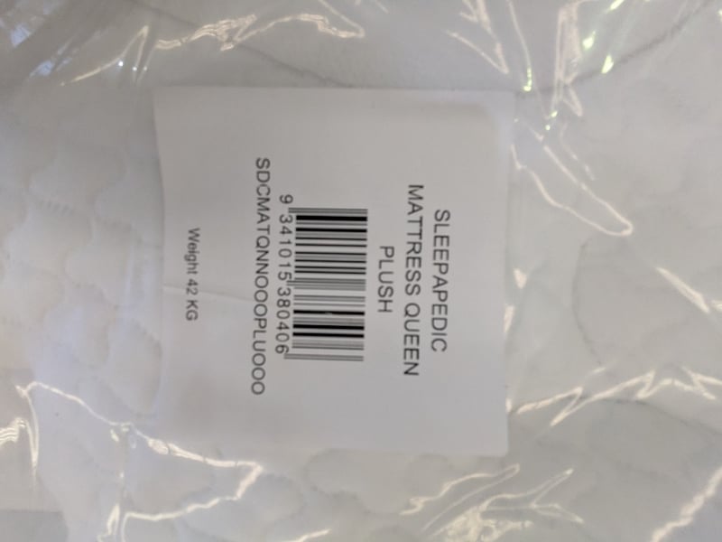 RRP $899 Sleepapedic Mattress, Orthopedic Mattress Plush, New in Wrap / Box, Good Condition, On-site Inspection Recommended Size: QueenApproximate Dimensions: H 205cm x W 153cm x D 35cmNote: Some Items Have Slight Scuff Marks & Stains, Some Items Marked Warehouse Rejected PARTS MAY BE MISSING, INSPECTION HIGHLY RECOMMENDED PARTS MAY BE MISSING, INSPECTION HIGHLY RECOMMENDEDSold as Lot