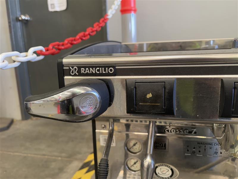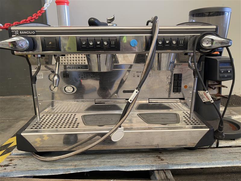 RANCILIO COMMERCIAL COFFEE MACHINE WITH RANCILIO GRINDER.