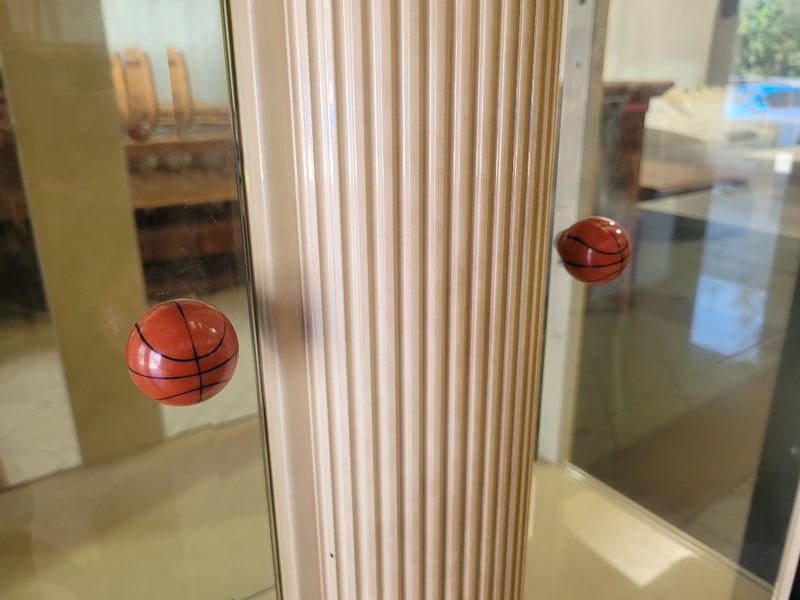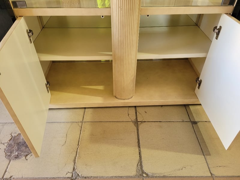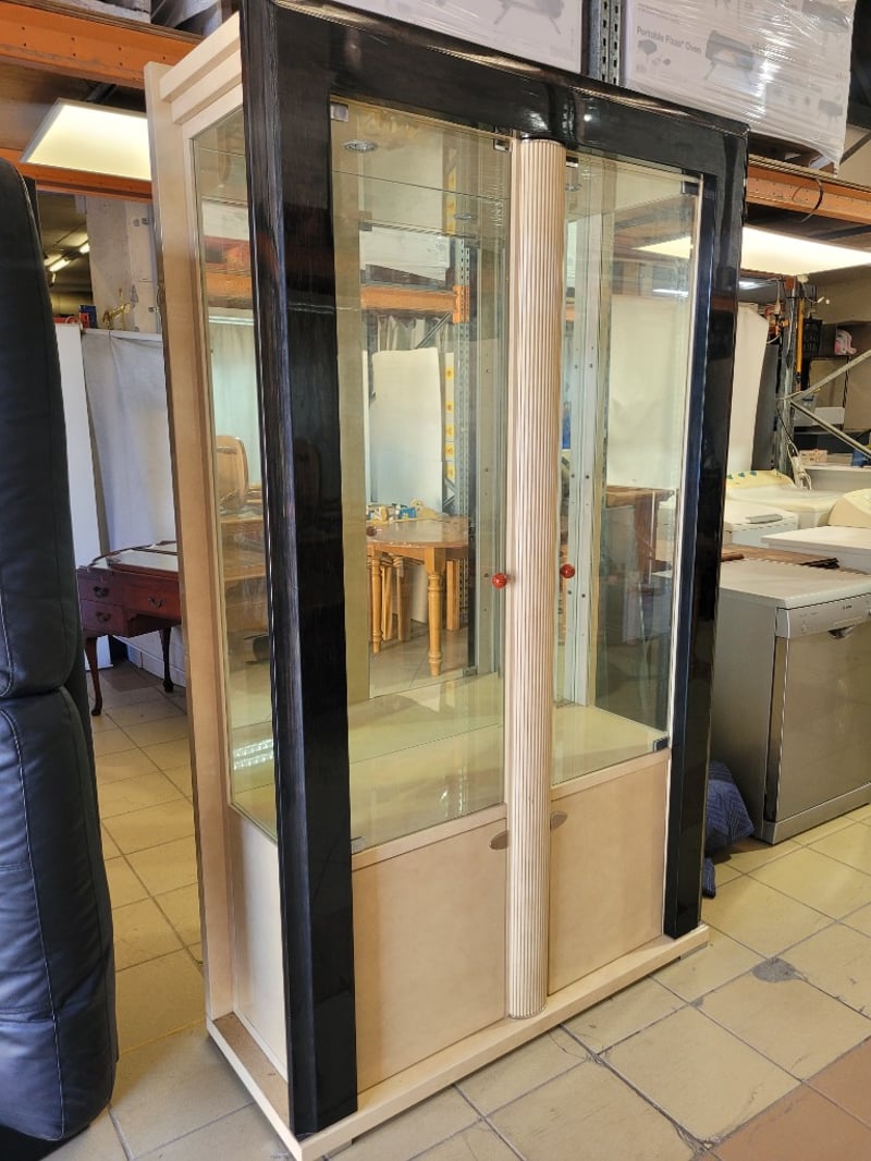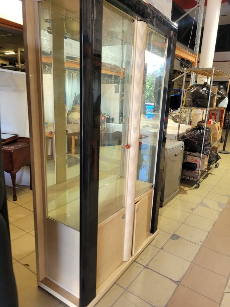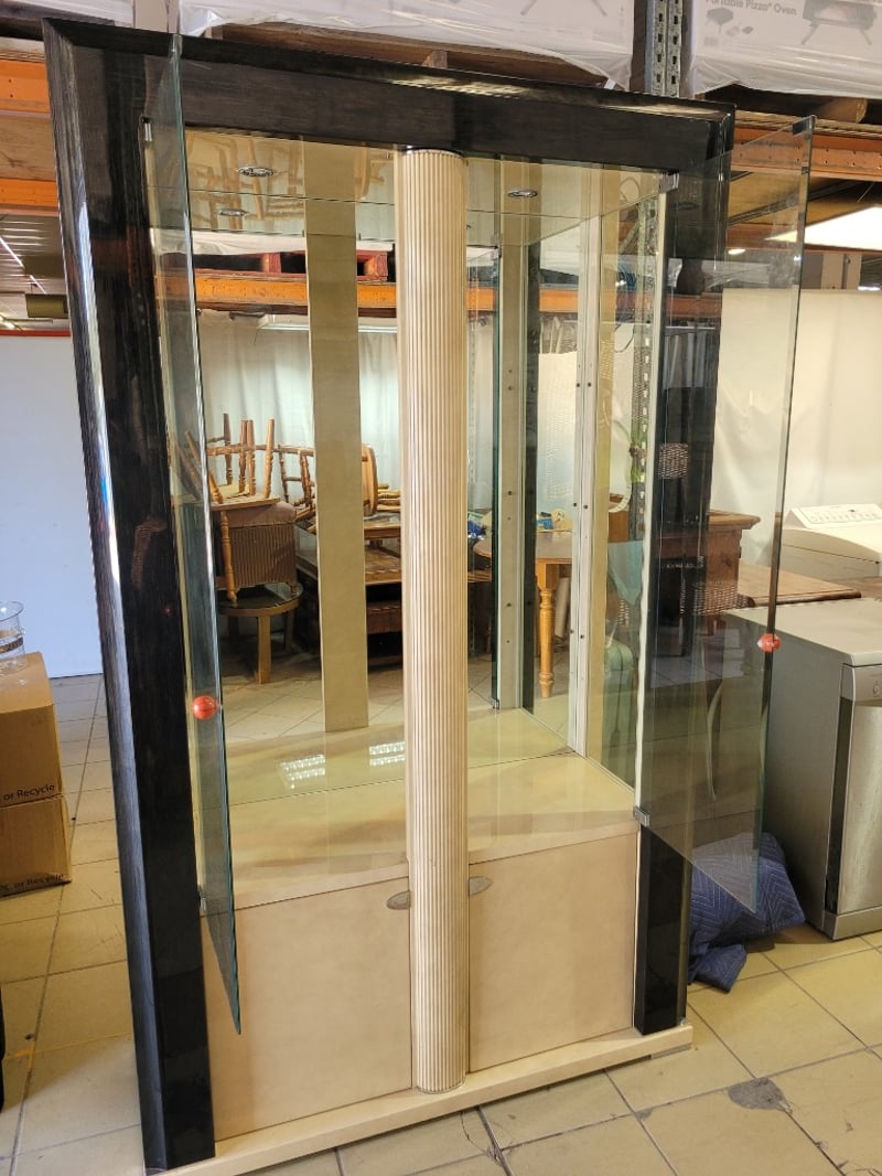 Sport Display Cabinet, Glass Front & 3 x Glass Shelves, Storage Areas, Cream & Black FinishDimensions H:207cm W:48cm D:123cm