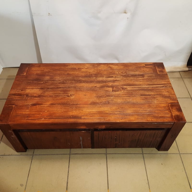 Coffee table, timber finish, brown colour finish , Rectangle shape.Dimensions: H 46cm x W 131cm x D 65cm.