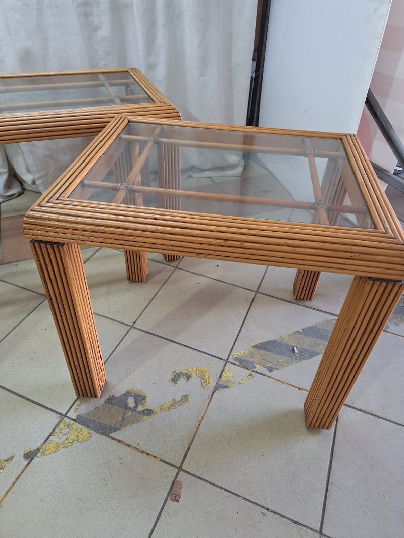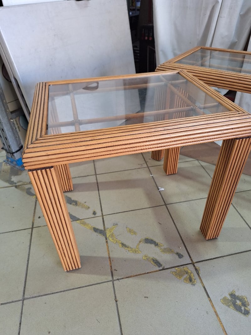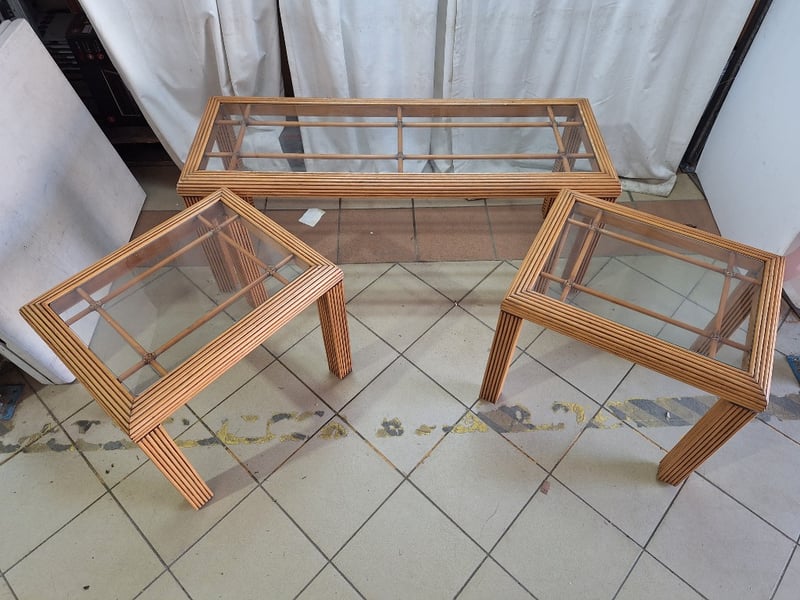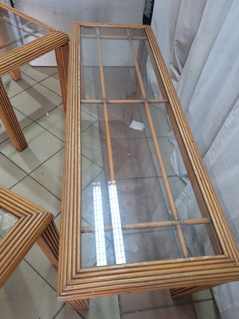 Coffee Tables, Rattan Style with Glass Top, Light Brown Finish Dimensions Small H:54cm W:49cm D:61cm Dimensions Large H:52cm W:49cm D:134cm