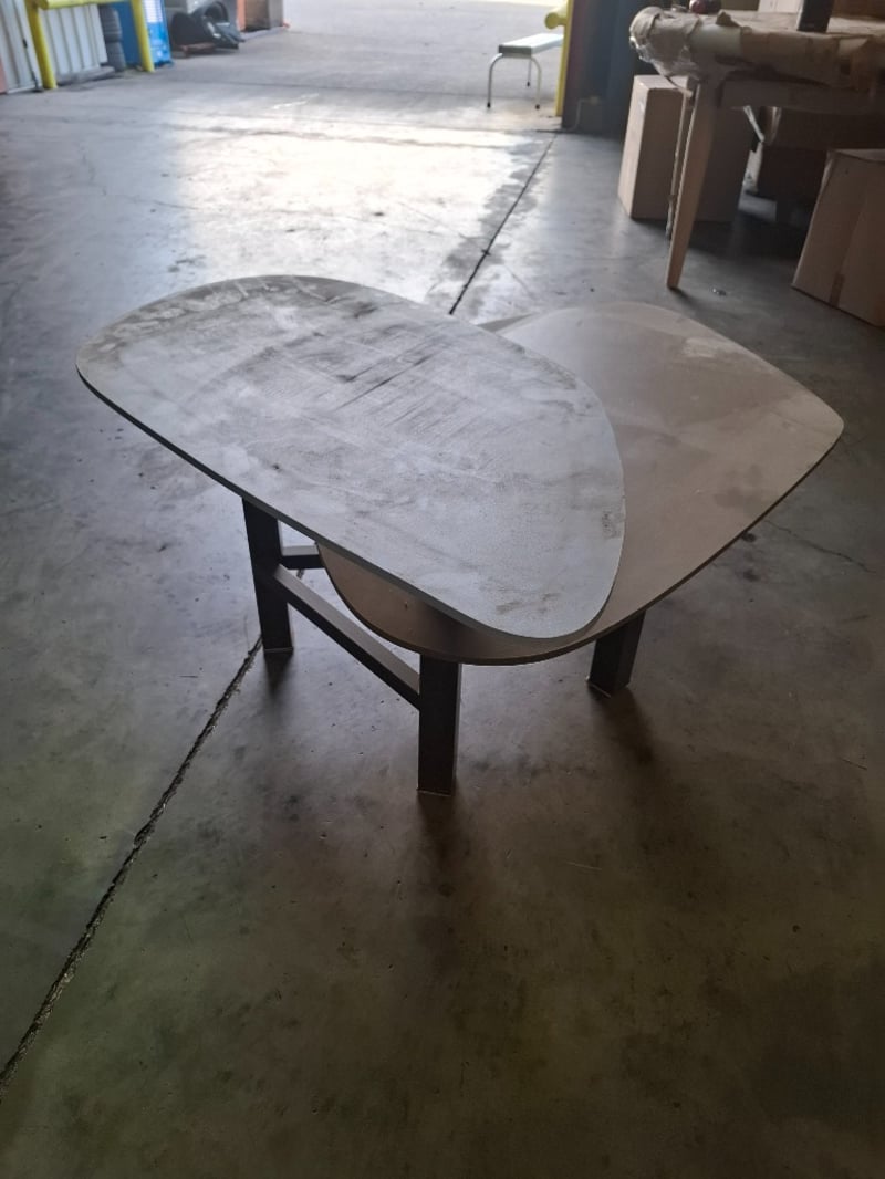 Abstract coffee table aluminum & wood NOTE: MAJOR MARKS AND SCRATCHES SOLD AS LOT