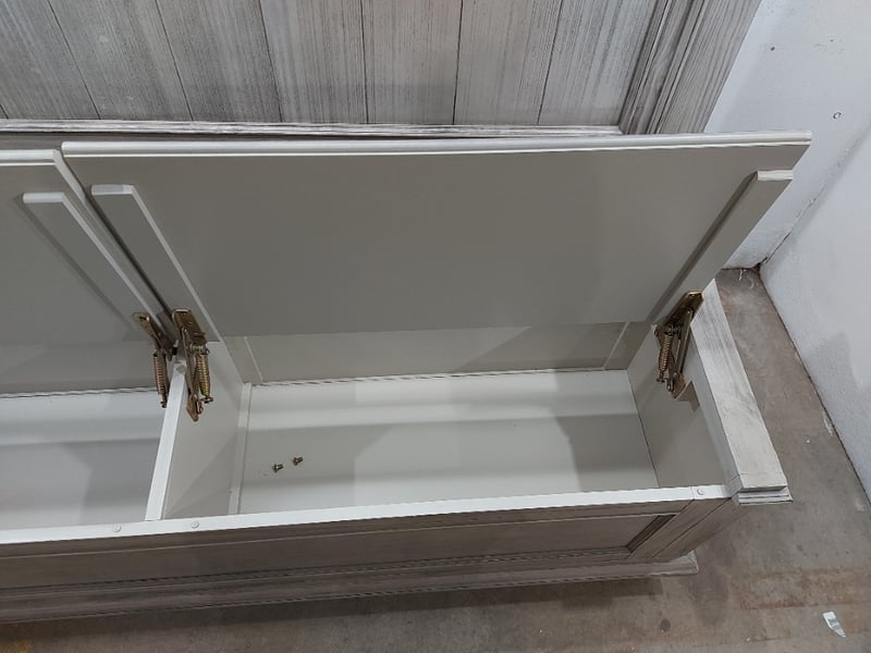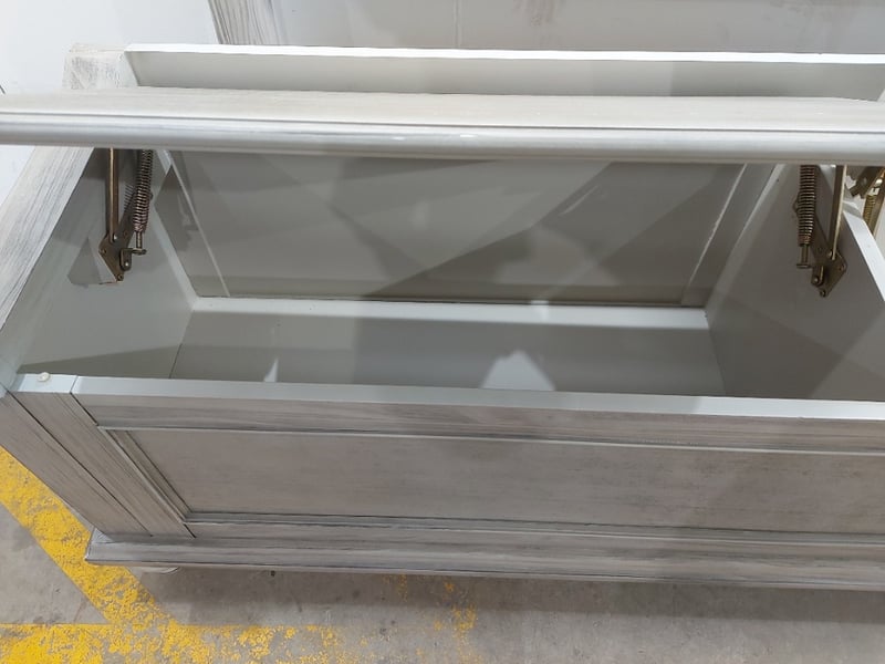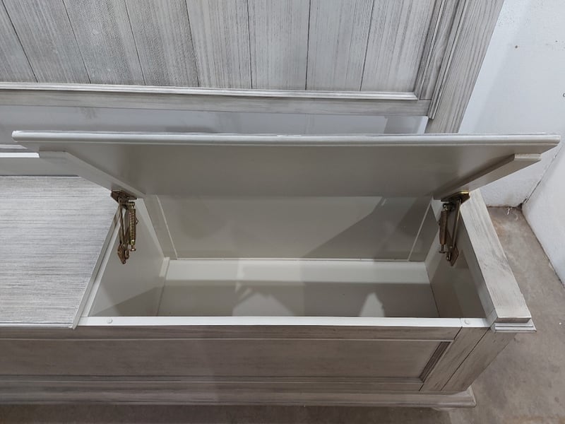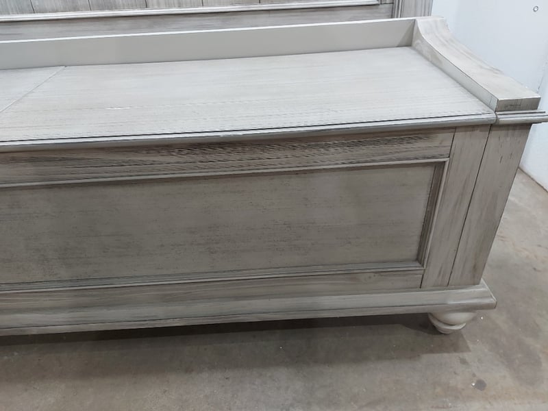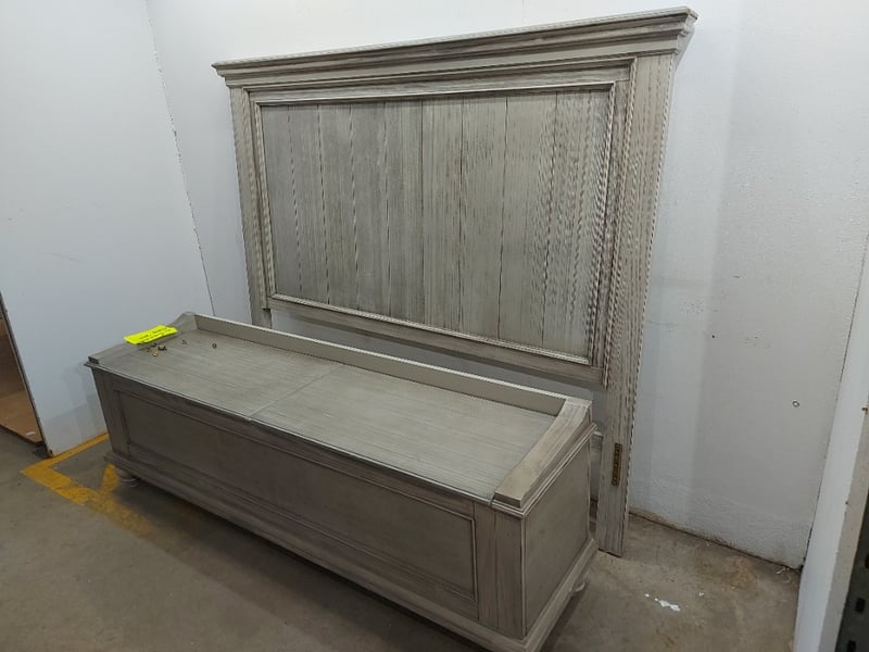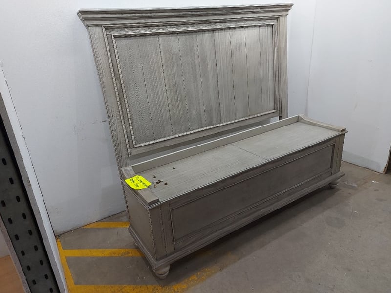 Bedhead With Storage Foot Box, Dimensions 167cmW×39cmD×143cmHNOTE: Marks And Scratches, No Sides, Slats Or Hardware See Photos