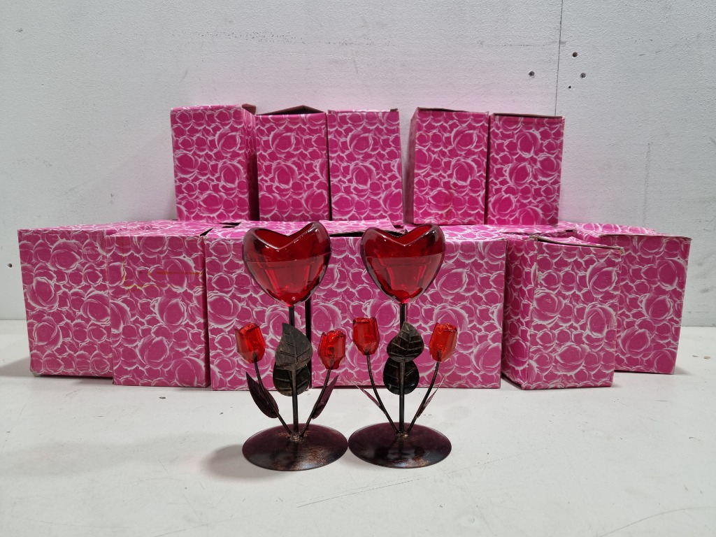 Glass red flower candle holders, with metal stand