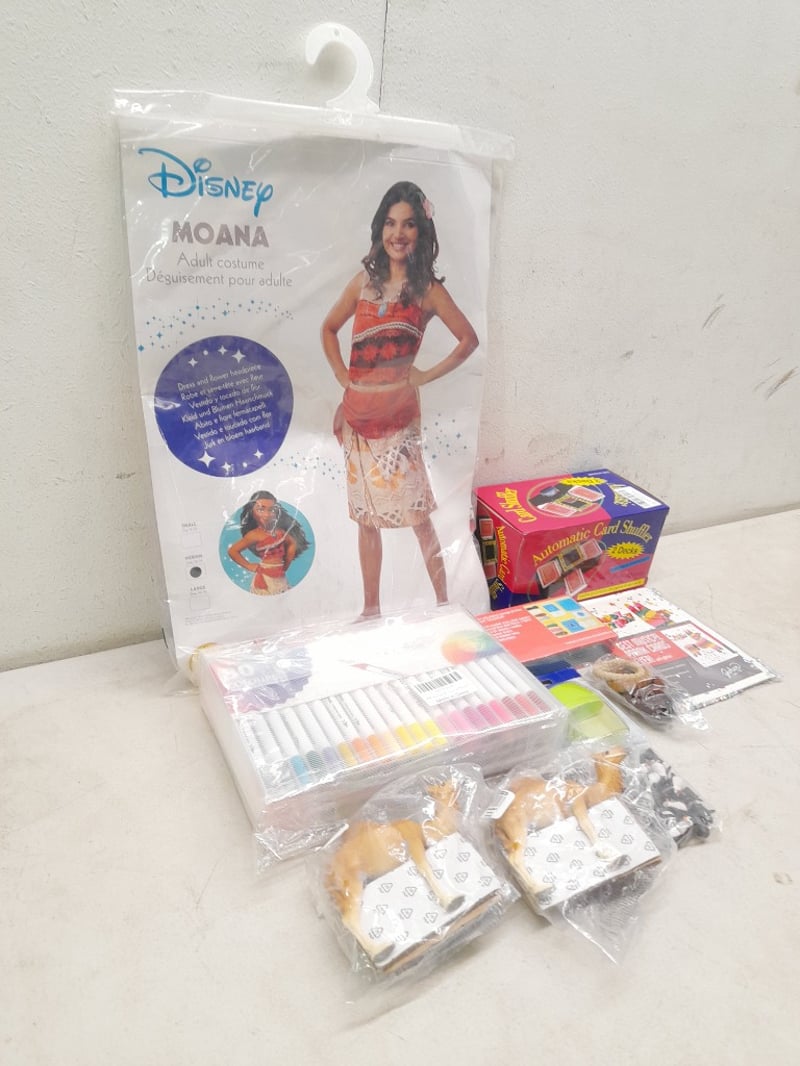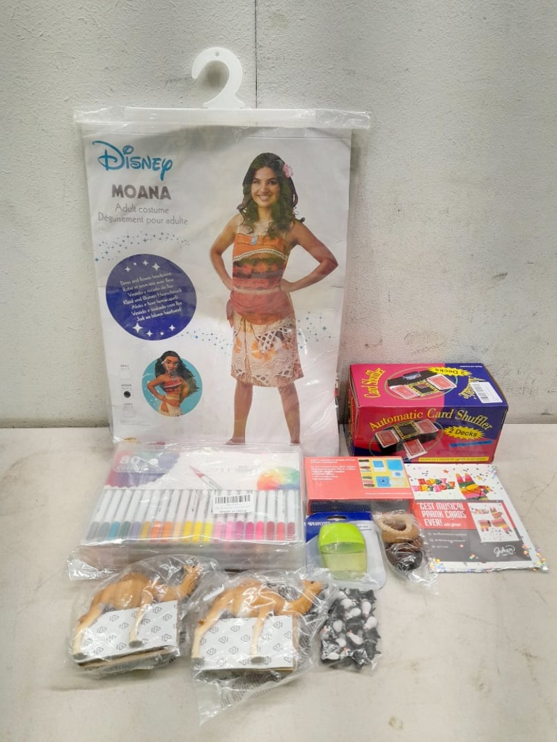 Disney Moana Adult Costume, 80-Color Art Markers, Card Shuffler, and Novelty Figures