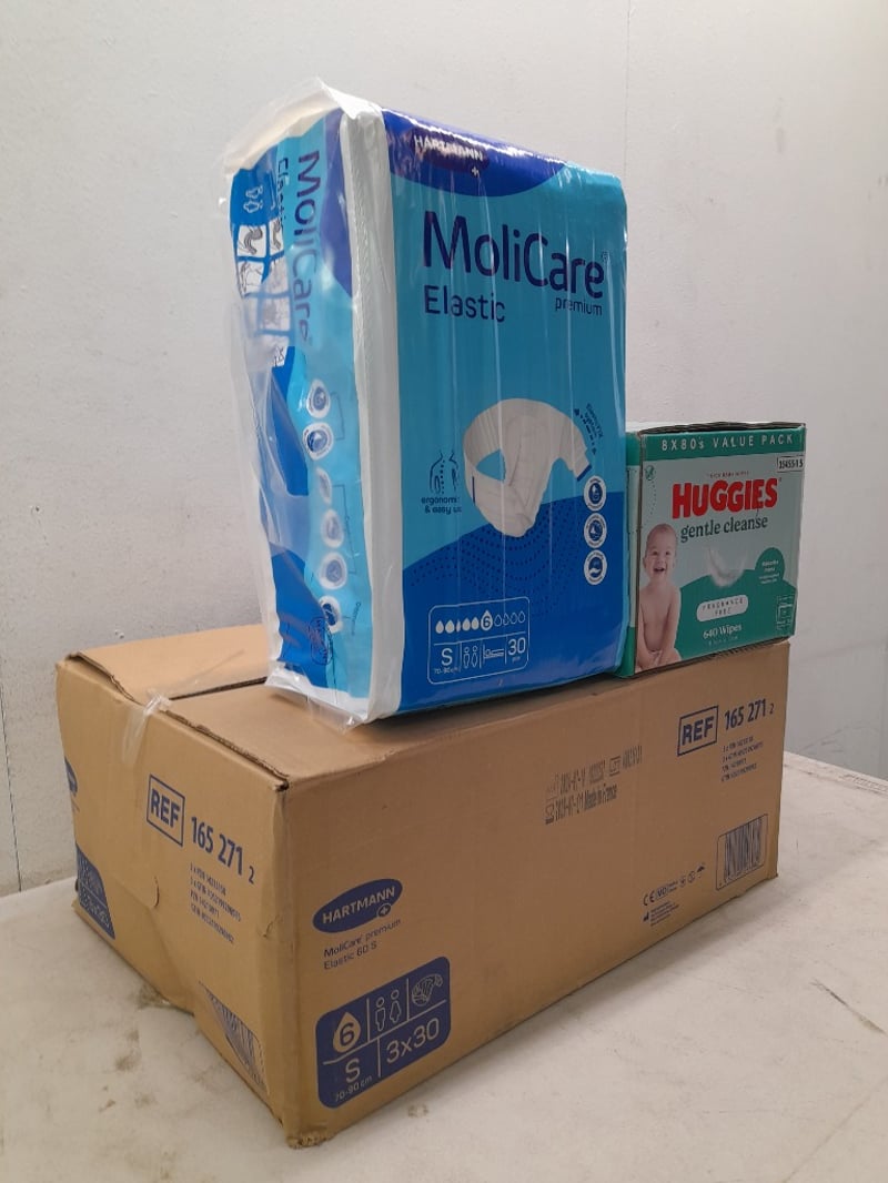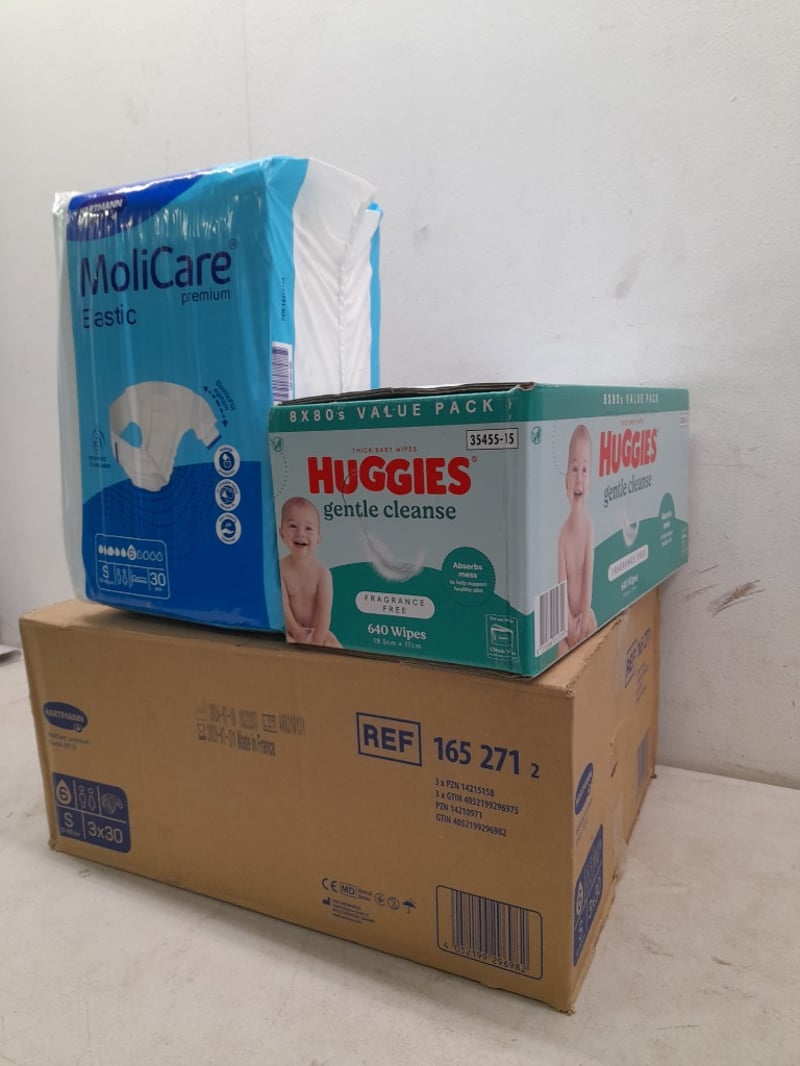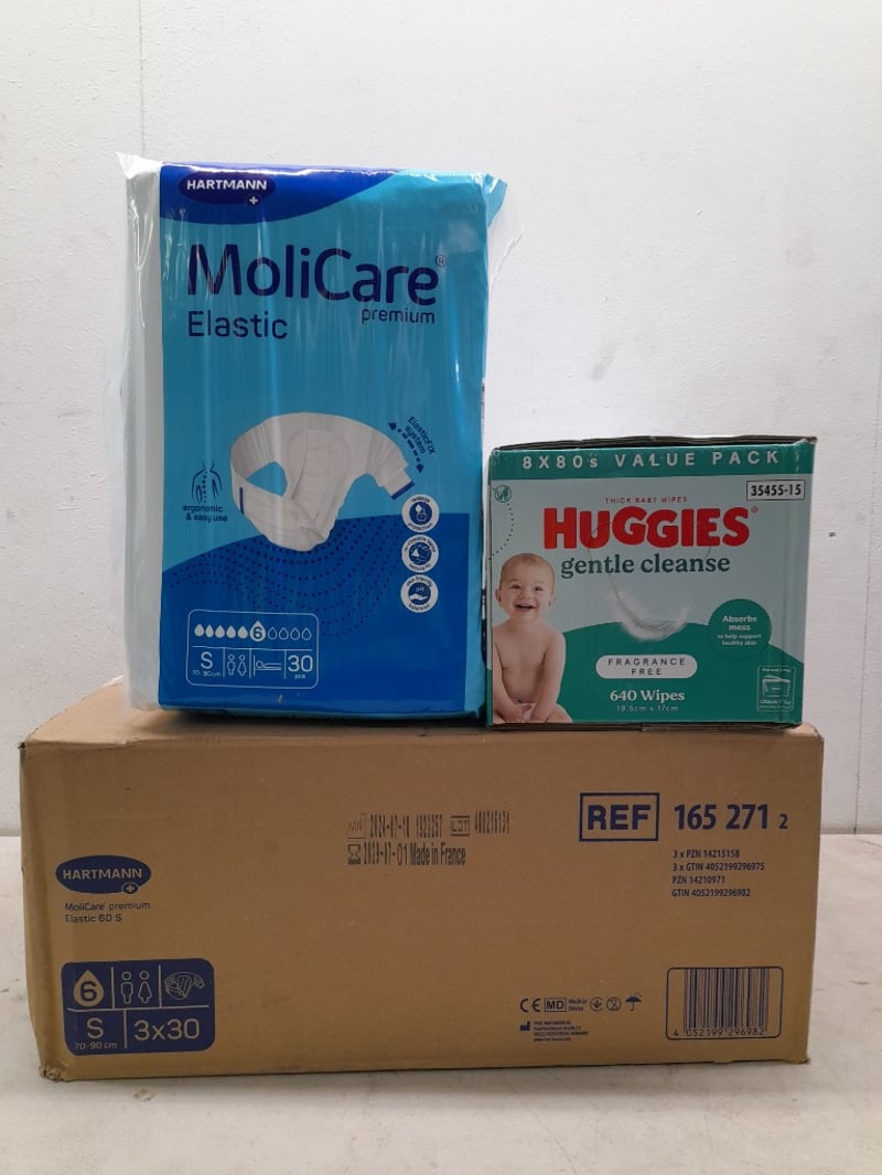 Diapers & baby wipes, Hartmann/Huggies, x90 diapers, x640 wipesSold as lot
