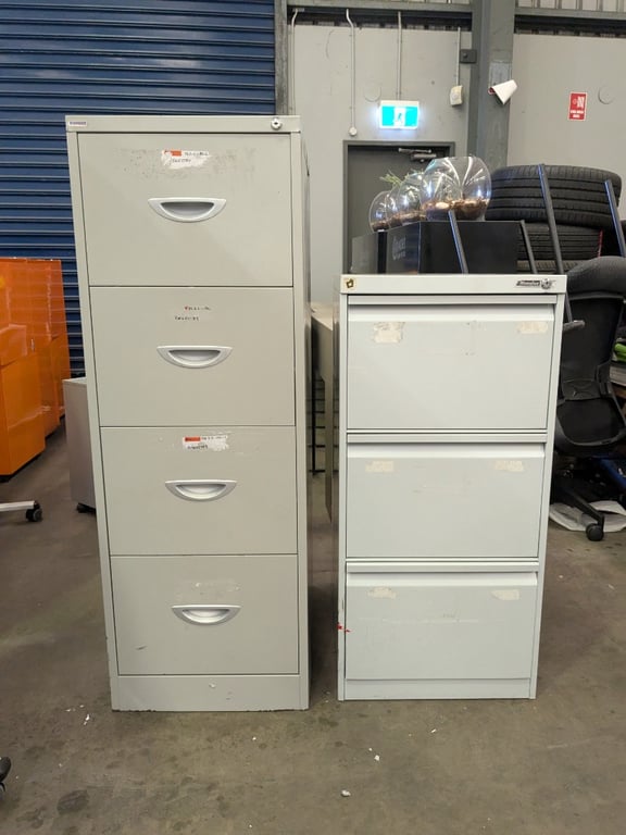 2 filing cabinets Approx dimensions (cm): 4 drawer filing cabinet: 47W x 132H x 64D3 drawer filing cabinet: 48W x 100H x 63D
