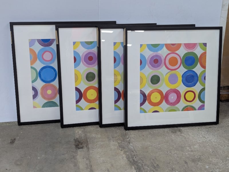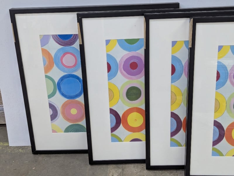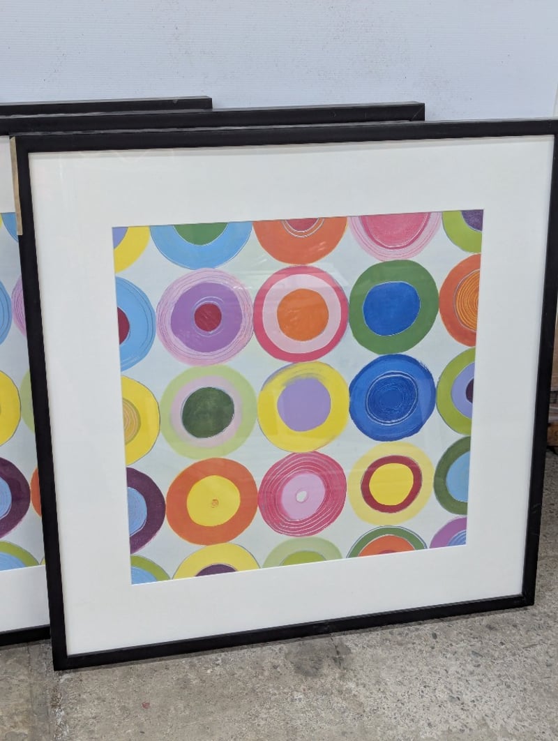 Framed prints, multi coloured circular design
