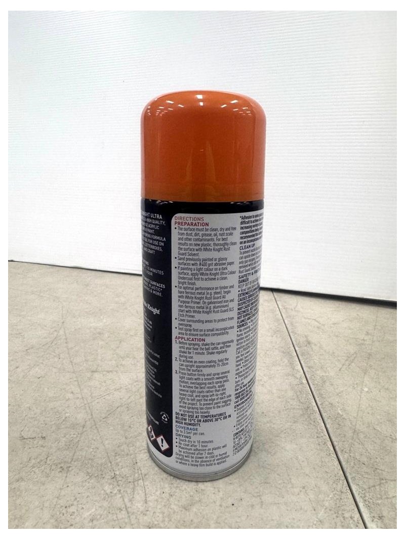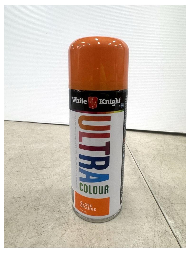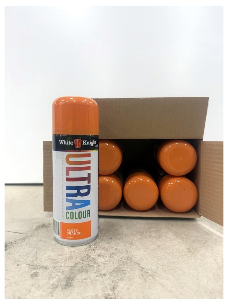 Ultra colour aerosol enamel paint, White knight, Gloss Orange, 310gm, x6 Cans