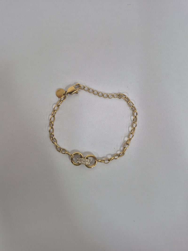 Gold style bracelet, with white stone charmDimensions H 1cm x W 1cm x L 20cm