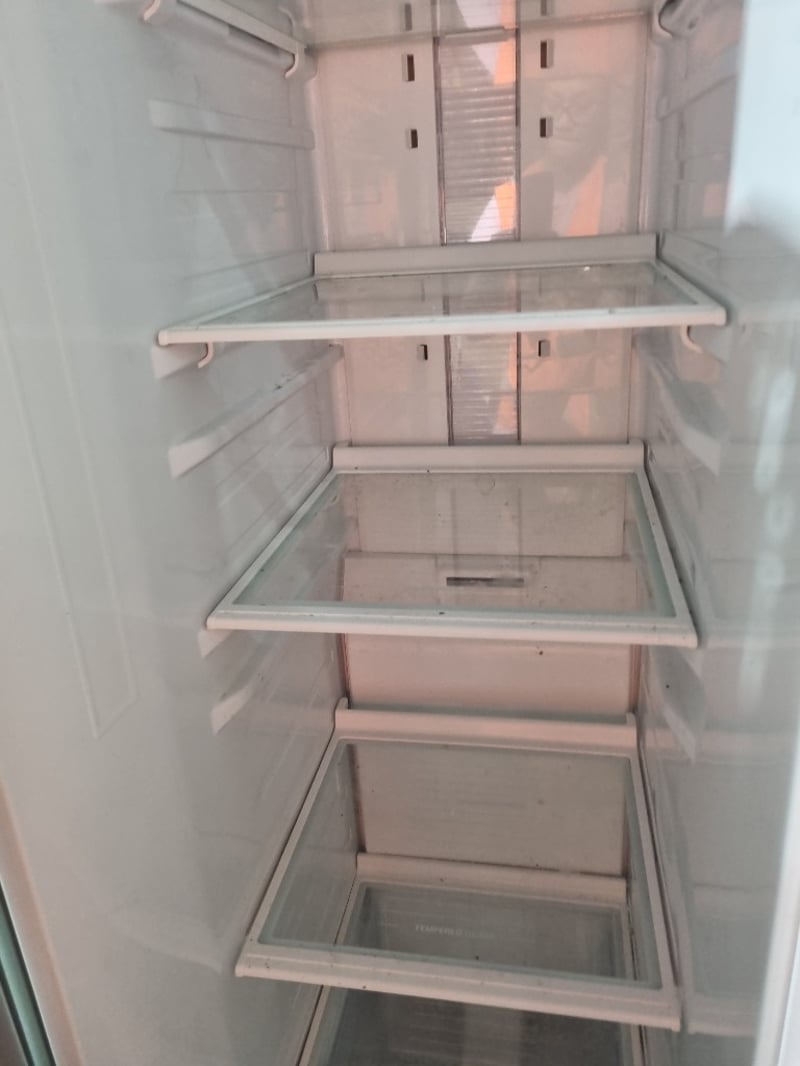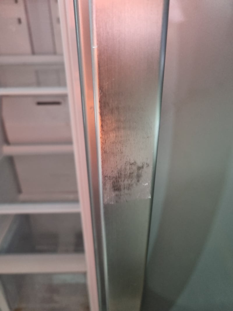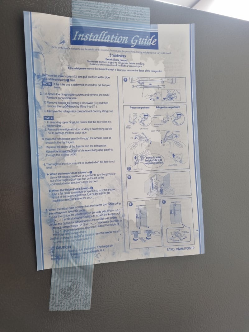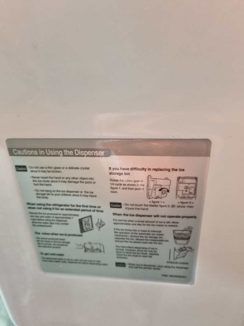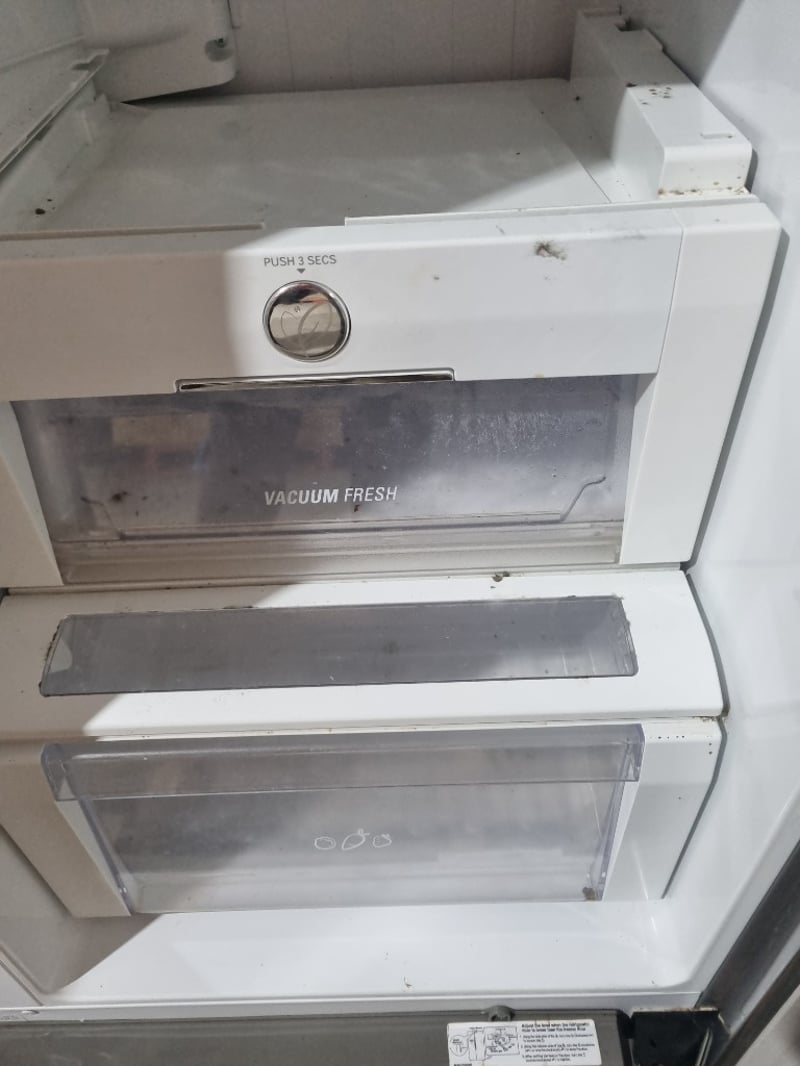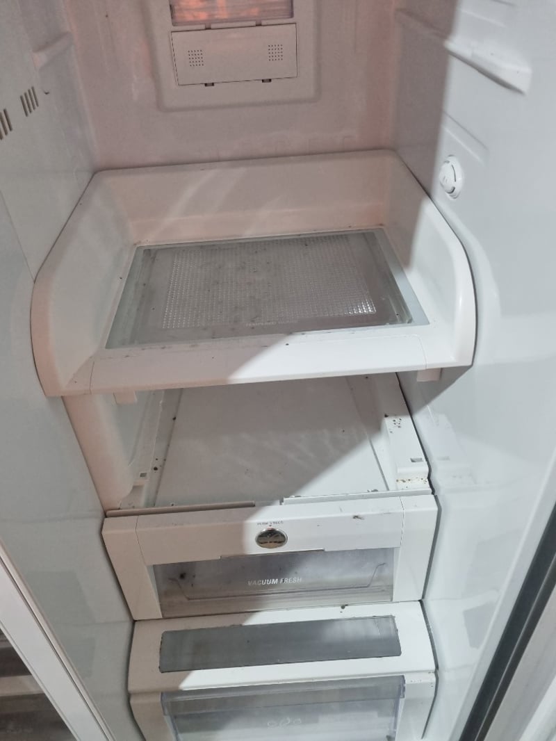 LG GR-L247DPSL Side-by-Side Refrigerator-Freezer in stainless steel finish. Model features 647L total capacity with 428L freezer compartment and 133L fresh food section. Equipped with ice and water dispenser on the door, multiple shelving systems, and vacuum fresh storage drawer. Unit operates on 230-240V, 50Hz with rated current of 1.05A. Manufactured in Korea with cyclopentane refrigerant. Dimensions: 91 x 61 x 179cmNote: untested,signs of wear