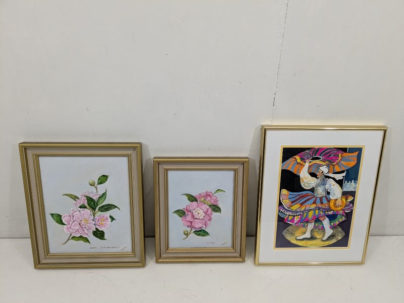 Assorted lots of wall art, including pair of floral art and Egypt Tandura DancerSold as lot