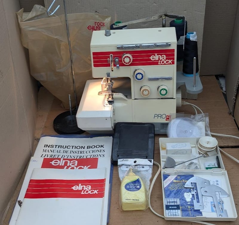 Overlocker sewing machine ELNA-Lock PRO 5 with foot pedal, manual, oil bottle and accessories
