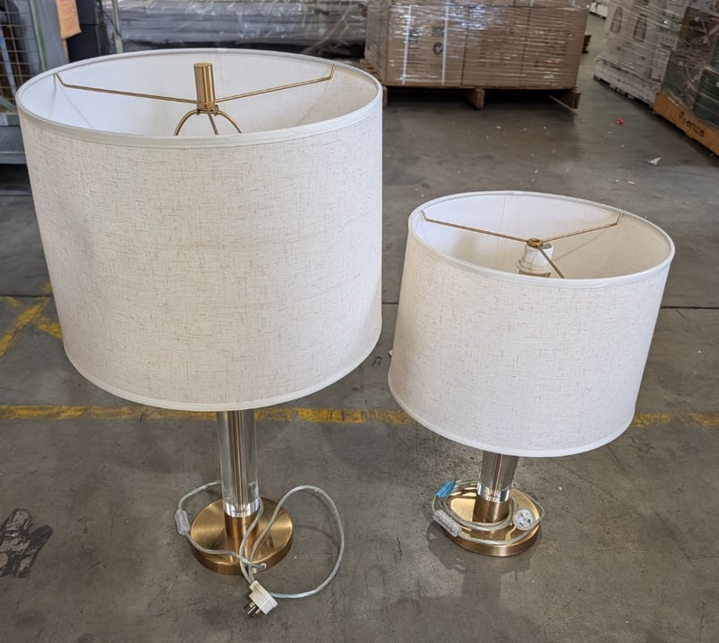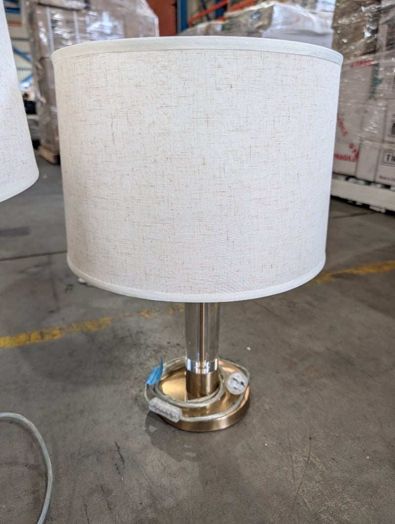 Brass Finish Lamps With White Lamp ShadeQTY: 2Note: Unknown If Shade Matches LampNote: Working Condition Unknown, Sold As Lot