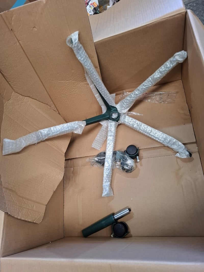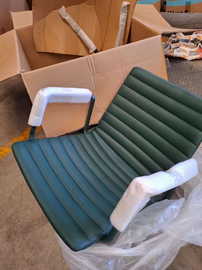 Disassembled office chair, forest green leather styleNote: parts maybe be missing