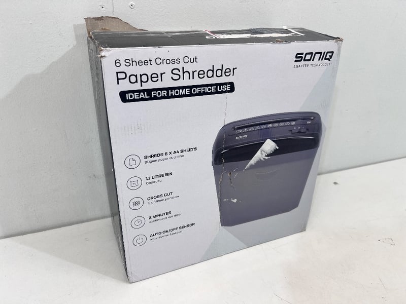Paper Shredder, Soniq, PSH006, 6 Sheet Cross Cut, 11litre capacity, Quantity: 1