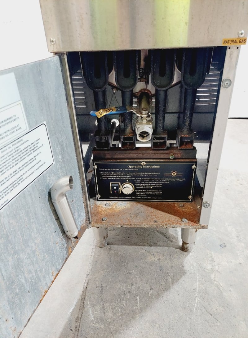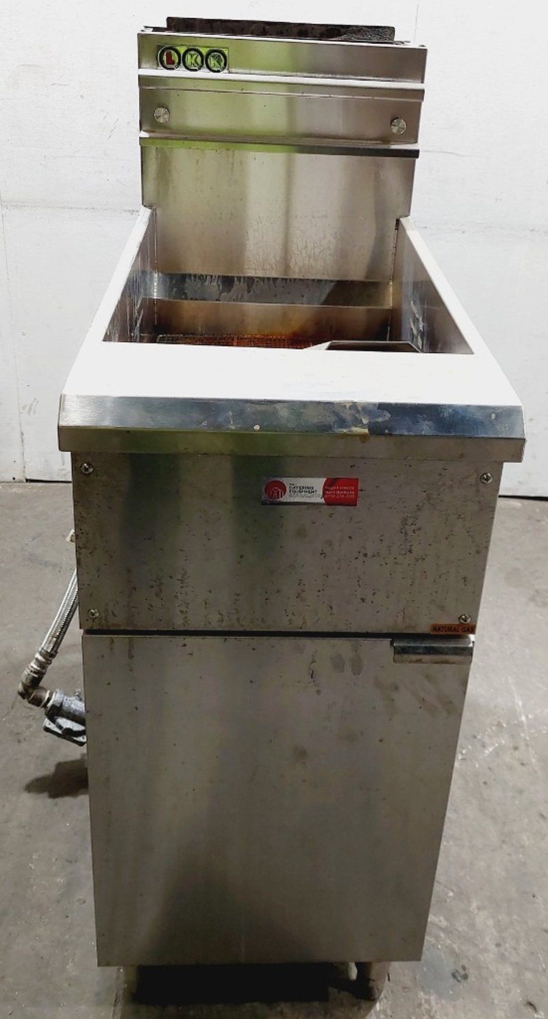 Commercial deep fryer unit - Model LKKGF4 Serial number NW11709187. Dimensions : 40 x 40 x 114cm Note : untested,signs of wear