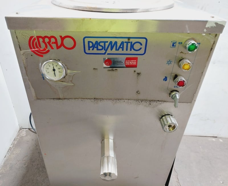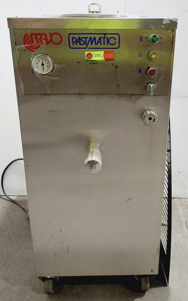 Bravo Pastmatic commercial kitchenware, stainless steel, Control panel, Unit mounted on wheeled base for mobility.