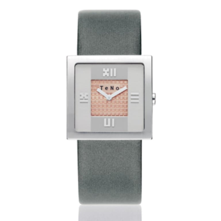 TENO WATCH CARYA LADY Brand: Teno Model Number: 089.1024.22 Dial: Rosegold plated- steel with Roman index Case: Stainless steel Bracelet: Grey satin strap 20mm Swiss Made, Quarz Movement, Curved Sapphire Crystal, 26X26Mm 3Atm. Condition: Good - Refer to Images FC