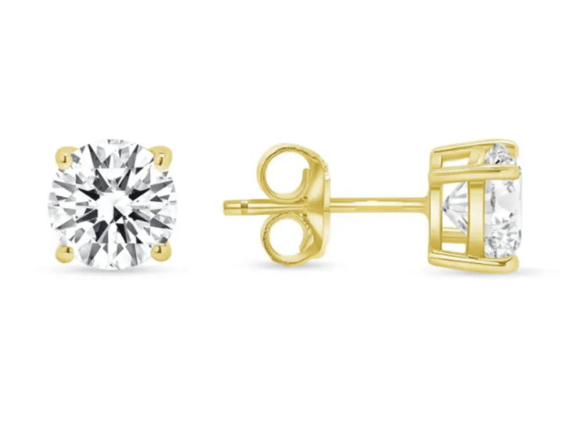 18K YELLOW GOLD LAB GROWN 4 CLAW STUDS EARRING D - VVS2