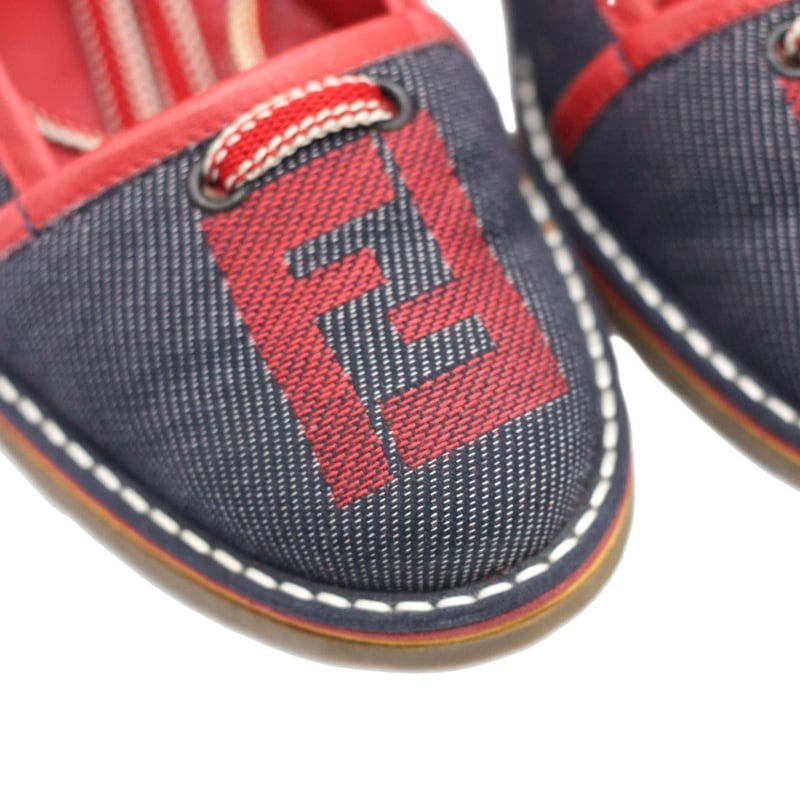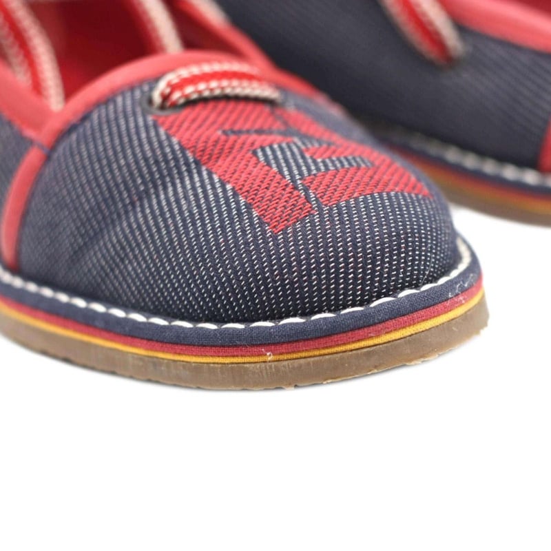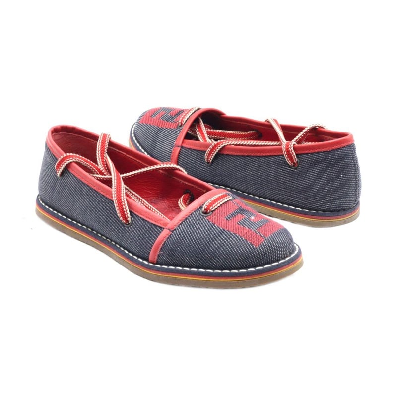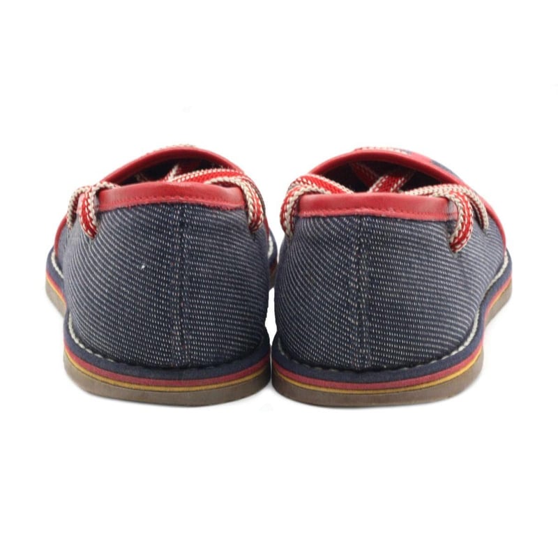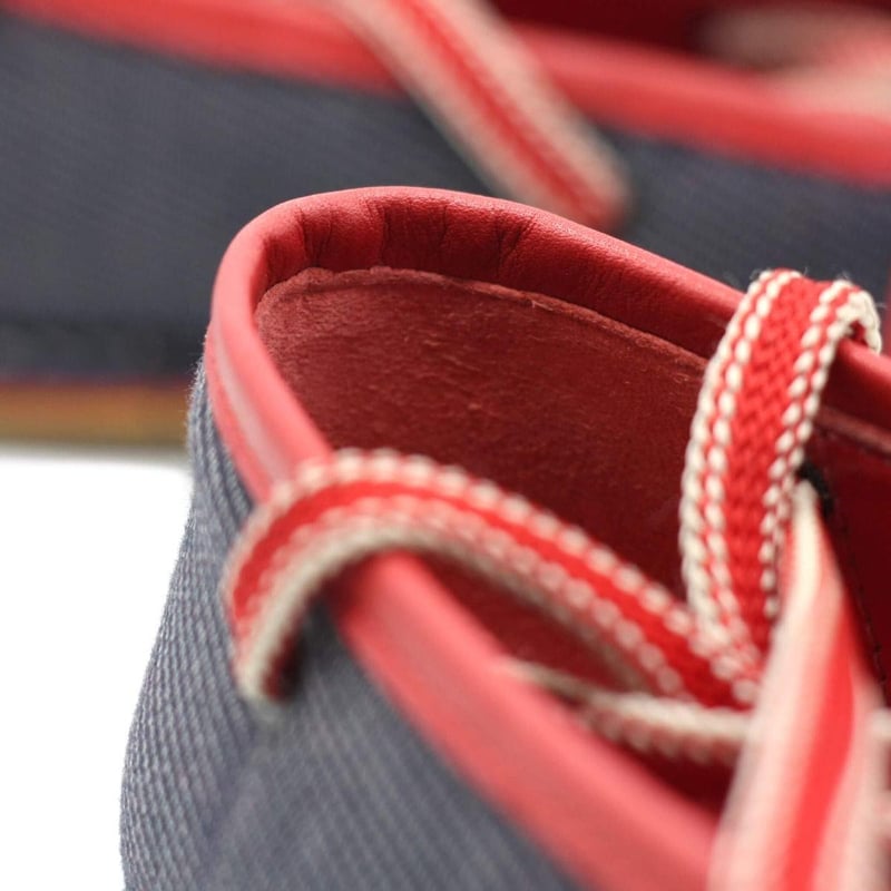 These enthralling shoes have been crafted in denim canvas in a shade of navy and feature red leather trims.