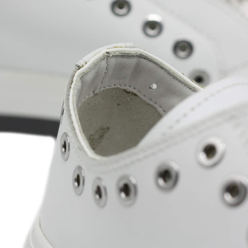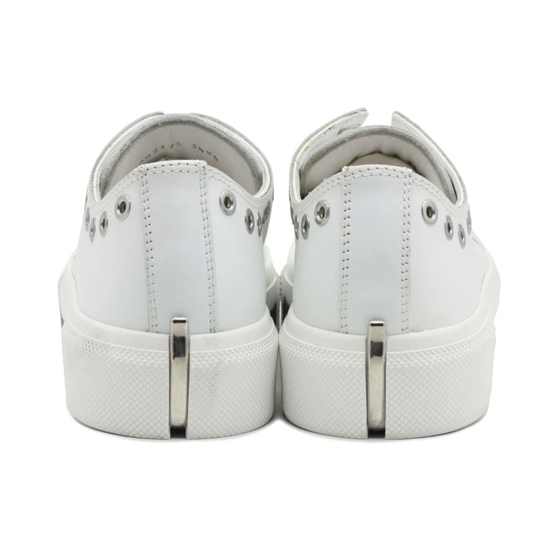ALEXANDER MCQUEEN WHITE LEATHER SNEAKERS SIZE 38.5 Size: EU 38.5 ALEXANDER MCQUEEN SIZE = US 8.5 Material Leather with rubber soles. Additional Condition Report - Merely wear on exterior - Only slight stains on bottom soles Comes With - Original Dustbag - Certificate of Authenticity CROSSED DOCKED 155256+29