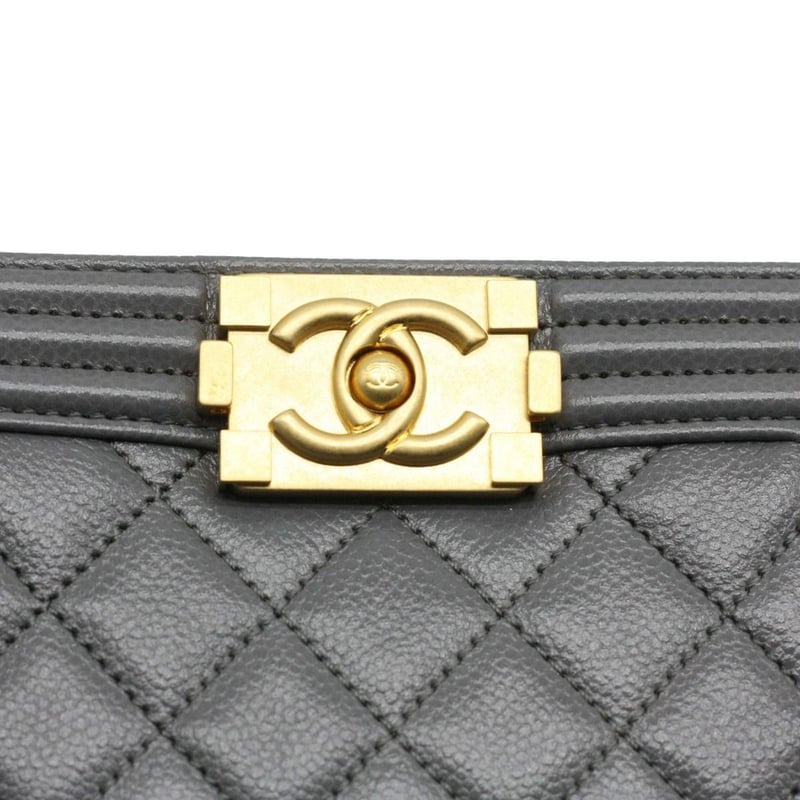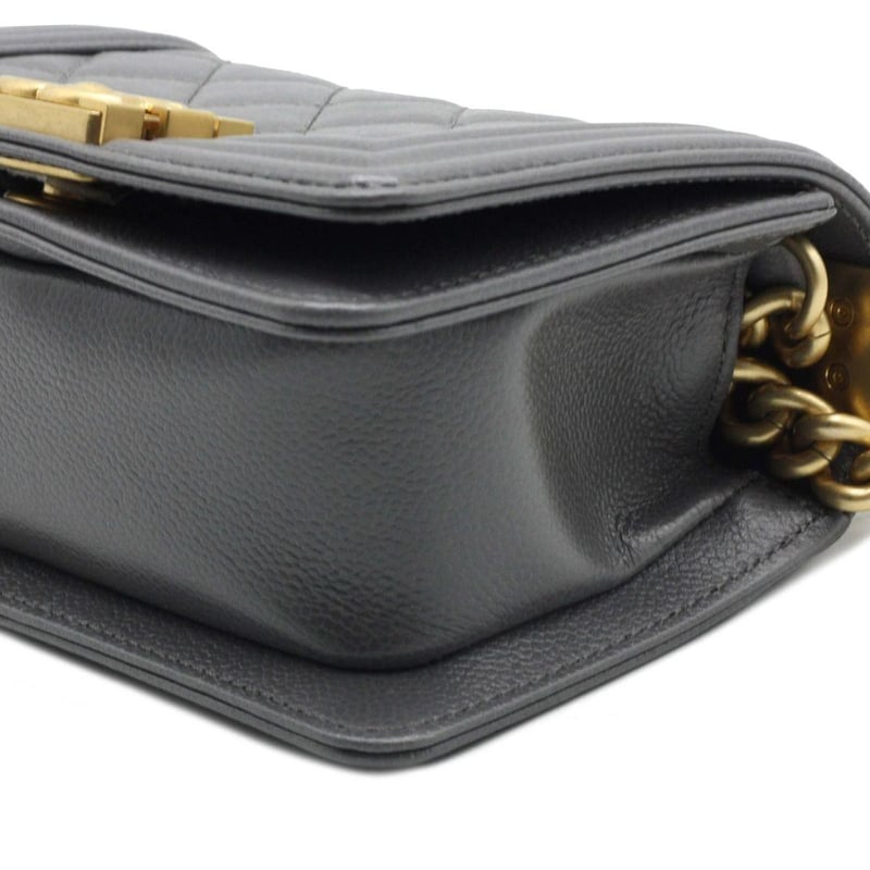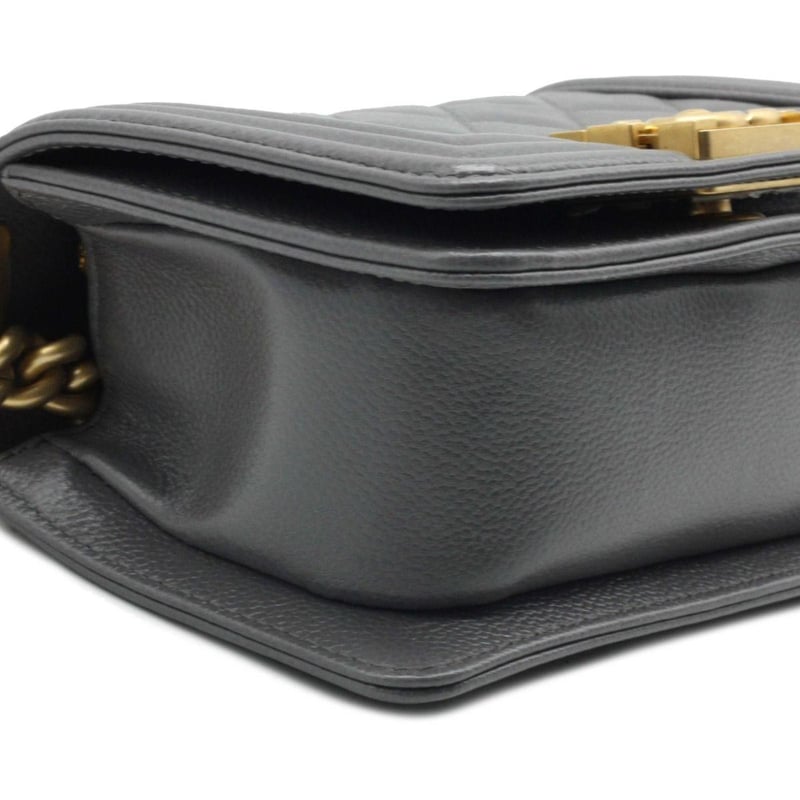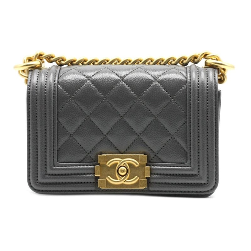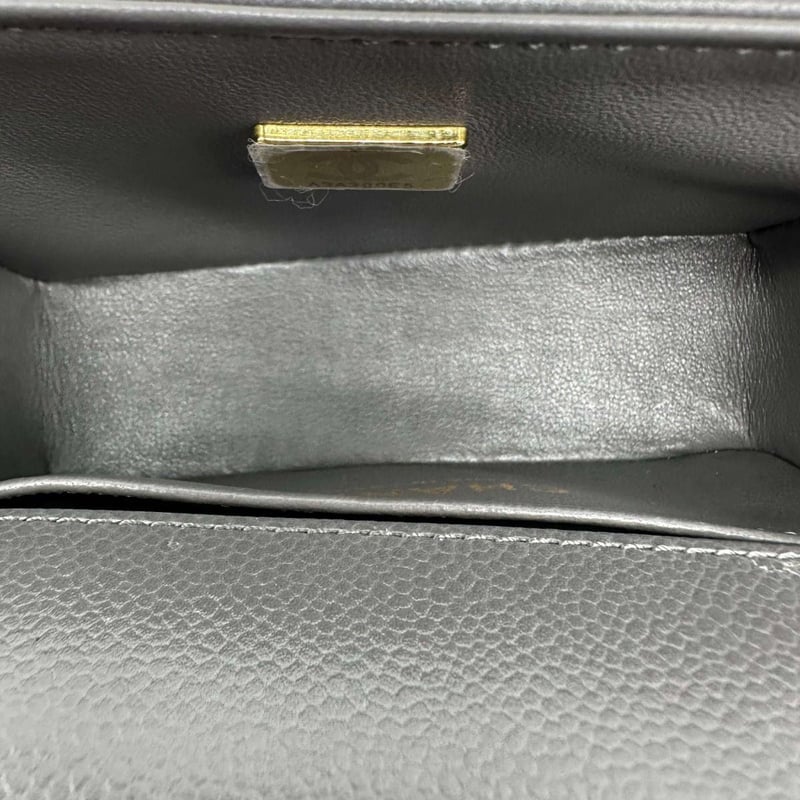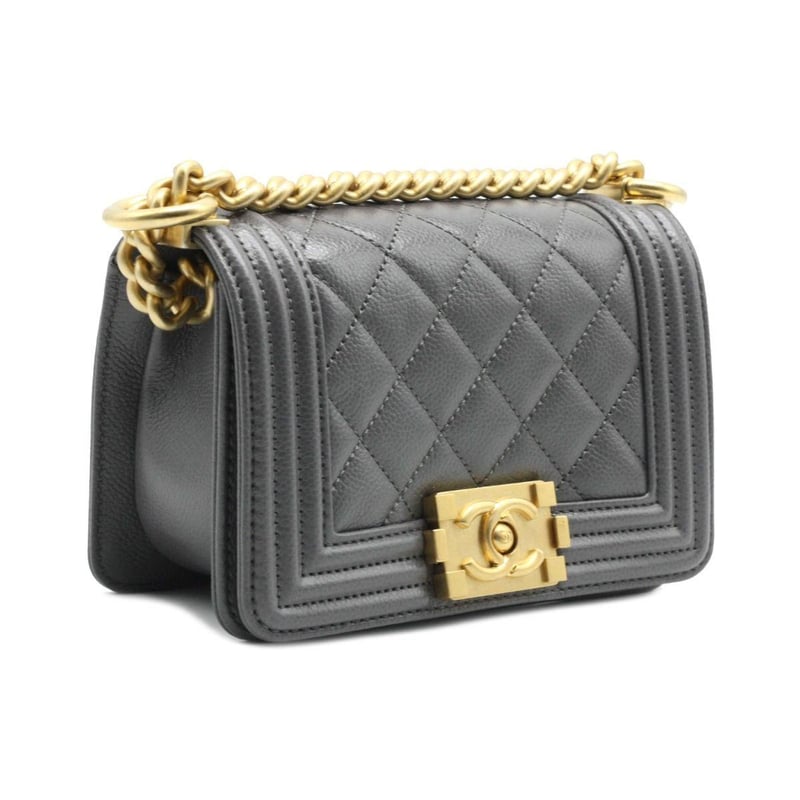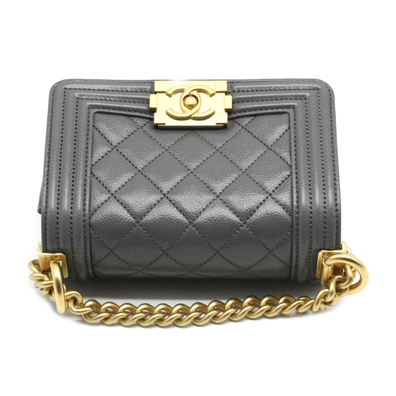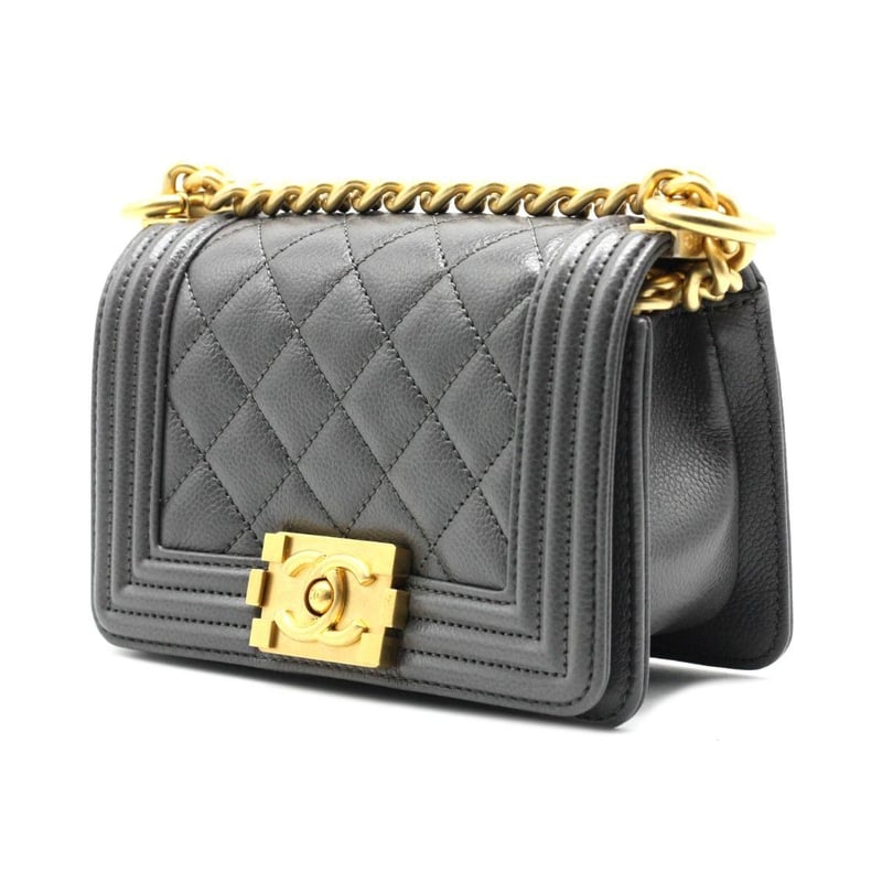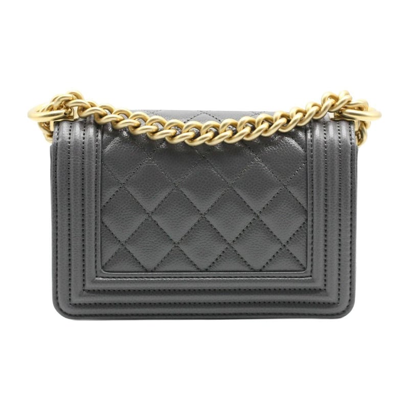 CHANEL GREY QUILTED CAVIAR LEATHER MINI BOY FLAP BAGLength: 15cmHeight: 10cmDepth: 5.5cmStrap Drop: 55cmExterior MaterialQuilted caviar leather with gold-tone hardware, push-lock closure and a shoulder strap.Interior MaterialLeather lining with a main compartment and a patch pocket.Additional Condition Report- Brand new with protective stickers onComes With- Original Box- Original Dustbag- Microchip- ReceiptCROSSED DOCKED 155219+39