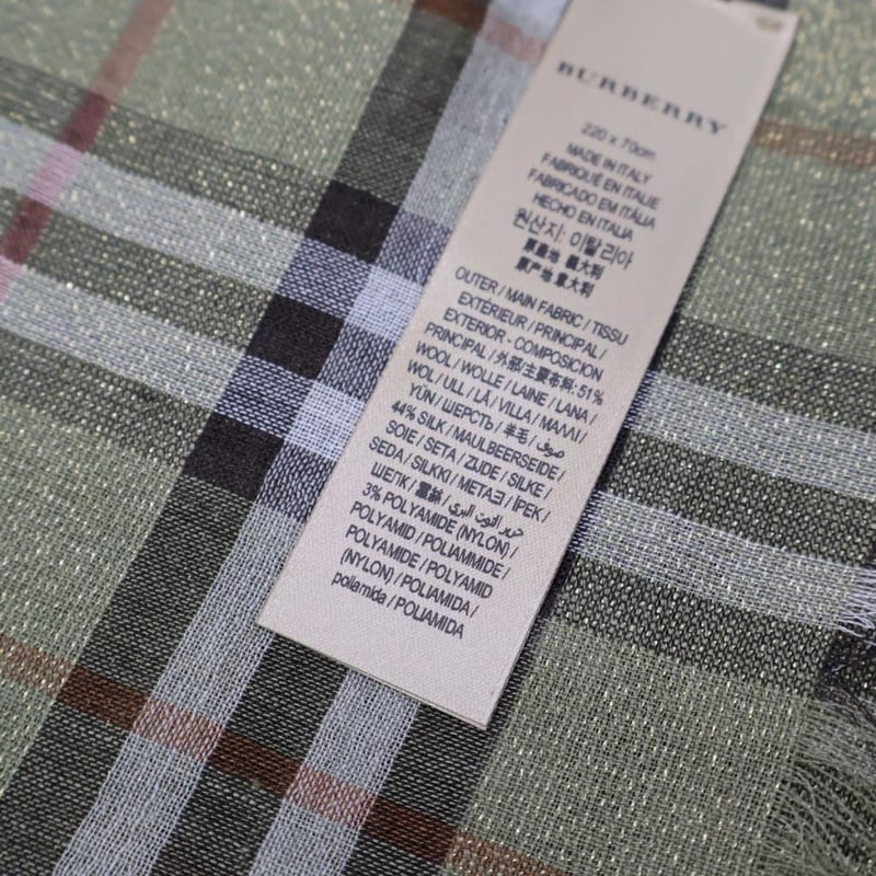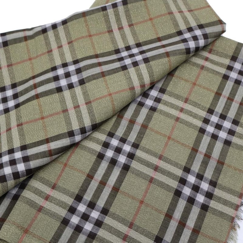BURBERRY WOOL SILK POLYAMIDE CHECK SCARF Material 51% Wool, 44% Silk and 3% Polyamide. Length: 220cm Height: 70cm Additional Condition Report - Merely sign of wear throughout Comes With - Certificate of Authenticity CROSSED DOCKED 155557+12
