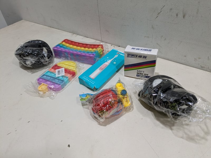 Assorted items include mini dv camera, pencil case and more... Sold as a lot.
