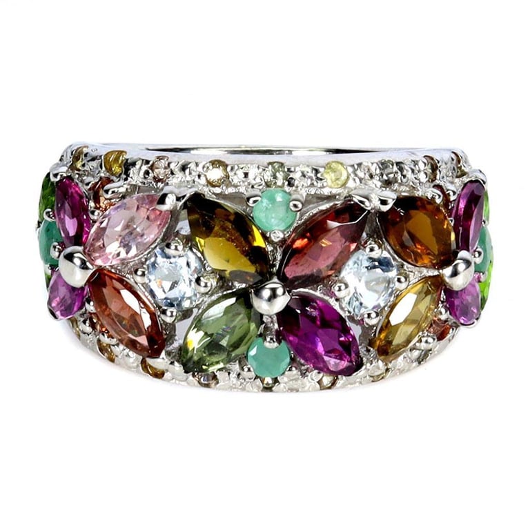 NATURAL TOURMALINE AQUAMARINE & EMERALD RING Natural Tourmaline Aquamarine & Emerald Ring. Made In Solid Sterling Silver And Plated In14K White Gold. Features All Natural Tourmaline, Aquamarine & Emeralds. Ring Size 8 Condition: Good - Refer Images 0488219+24