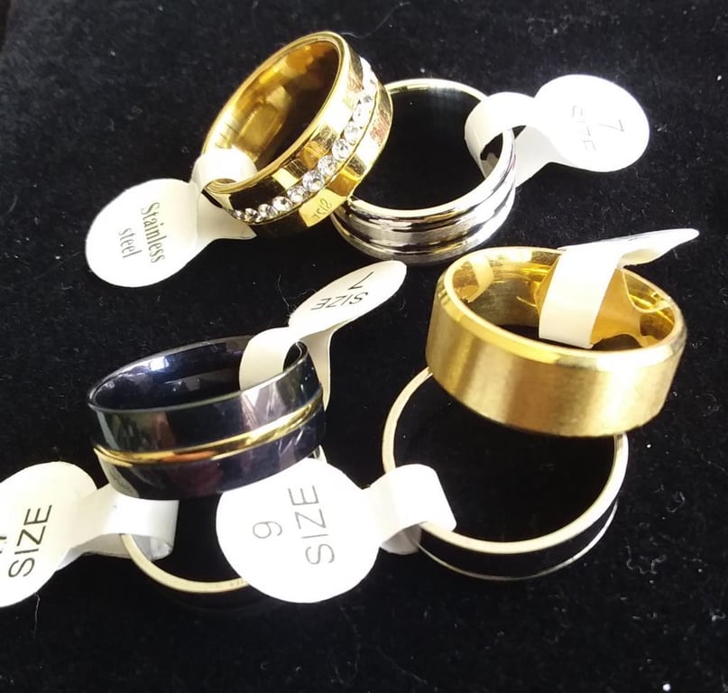 6 X STAINLESS STEEL UNISEX RINGS Assorted Designs And Sizes Condition: Good - Refer to Images 0162945+11FC